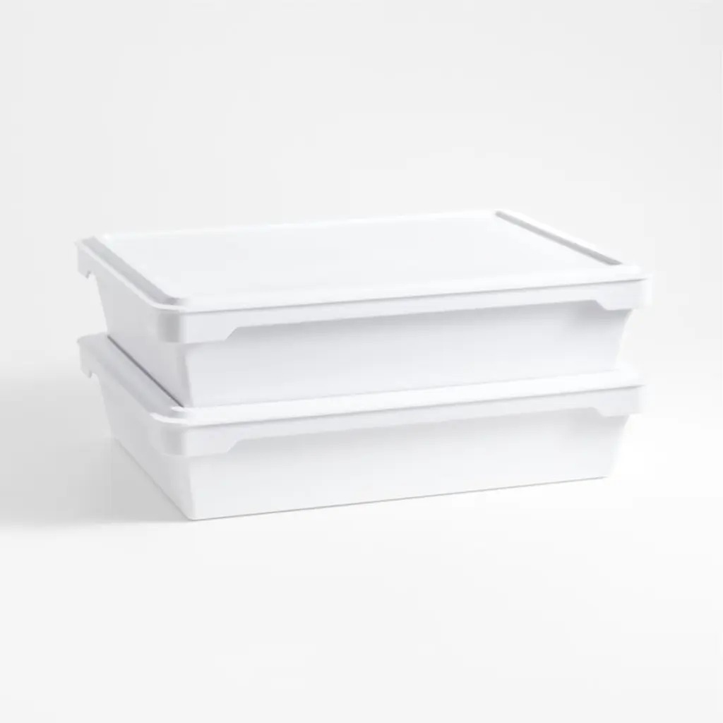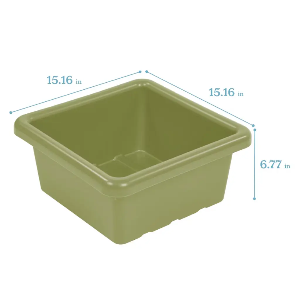 ECR4Kids Square Bins with Lids bring accessibility and ease to the classroom and home. The 2-pack of plastic containers with translucent lids is perfect for keeping classroom supplies, sensory toys, manipulatives, art supplies, kitchen and office items, books, and reading material contained and clutter-free. Create functional early educational and home spaces with storage bins organized by color or label. Store materials for learning centers or stations. The curved interior makes it easy to remove contents and non-snap lids are convenient for children and adults to access supplies. Introduce the concept of cooperative play to children by arranging bins indoors or outdoors. This setup encourages side-by-side play, fostering social interaction and teamwork among young participants. Bins provide a dedicated space for water play, kinetic sand, and various sensory materials. If used with the sensory table, bins snap into place and stay secure during tactile activities. Secure lids to keep contents protected. When learning time is over, educators and students can easily transport the bins with rounded edges. The bins with lids stack for vertical storage, or when empty, nest to save valuable classroom space. Use as replacement bins for ECR4Kids Sand and Water Tables, sold separately.