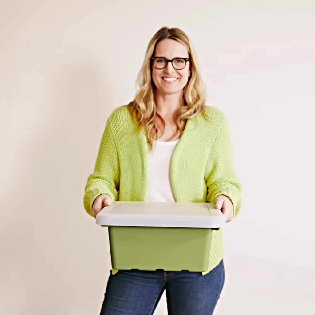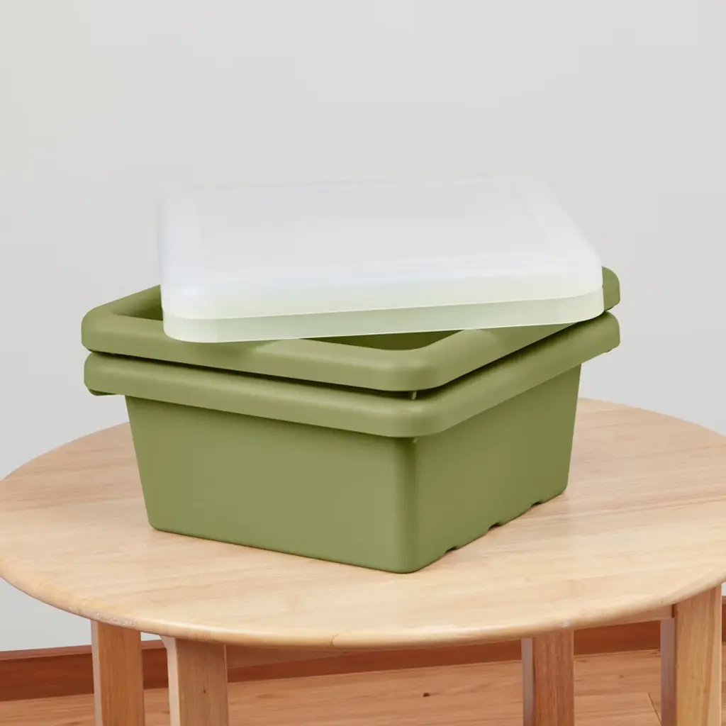 Ecr4kids Square Bin With Lid, Fern Green, 2-pack