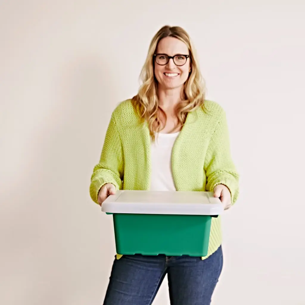 Ecr4kids Square Bin With Lid, Green, 2-pack