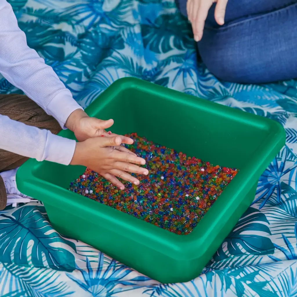 ECR4Kids Square Bins with Lids bring accessibility and ease to the classroom and home. The 2-pack of plastic containers with translucent lids is perfect for keeping classroom supplies, sensory toys, manipulatives, art supplies, kitchen and office items, books, and reading material contained and clutter-free. Create functional early educational and home spaces with storage bins organized by color or label. Store materials for learning centers or stations. The curved interior makes it easy to remove contents and non-snap lids are convenient for children and adults to access supplies. Introduce the concept of cooperative play to children by arranging bins indoors or outdoors. This setup encourages side-by-side play, fostering social interaction and teamwork among young participants. Bins provide a dedicated space for water play, kinetic sand, and various sensory materials. If used with the sensory table, bins snap into place and stay secure during tactile activities. Secure lids to keep contents protected. When learning time is over, educators and students can easily transport the bins with rounded edges. The bins with lids stack for vertical storage, or when empty, nest to save valuable classroom space. Use as replacement bins for ECR4Kids Sand and Water Tables, sold separately.