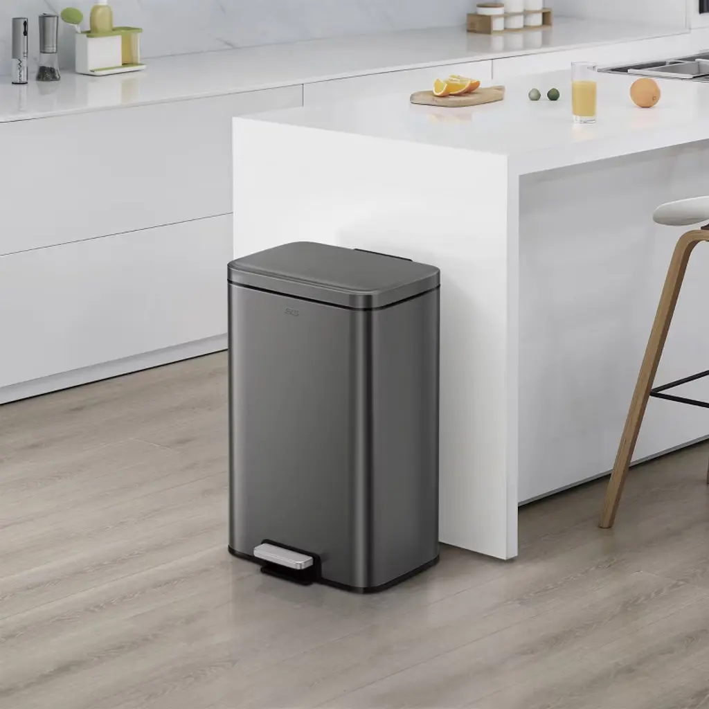 Eko Maxwell 50l Matte Black Steel Step Kitchen Trash Can