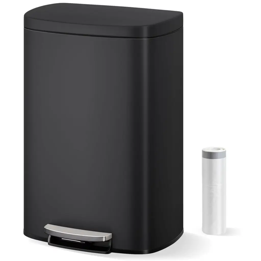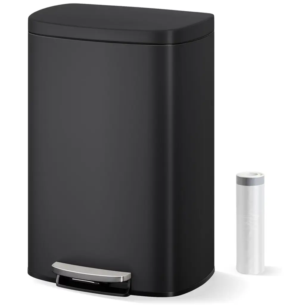 Eko Maxwell 50l Matte Black Steel Step Kitchen Trash Can