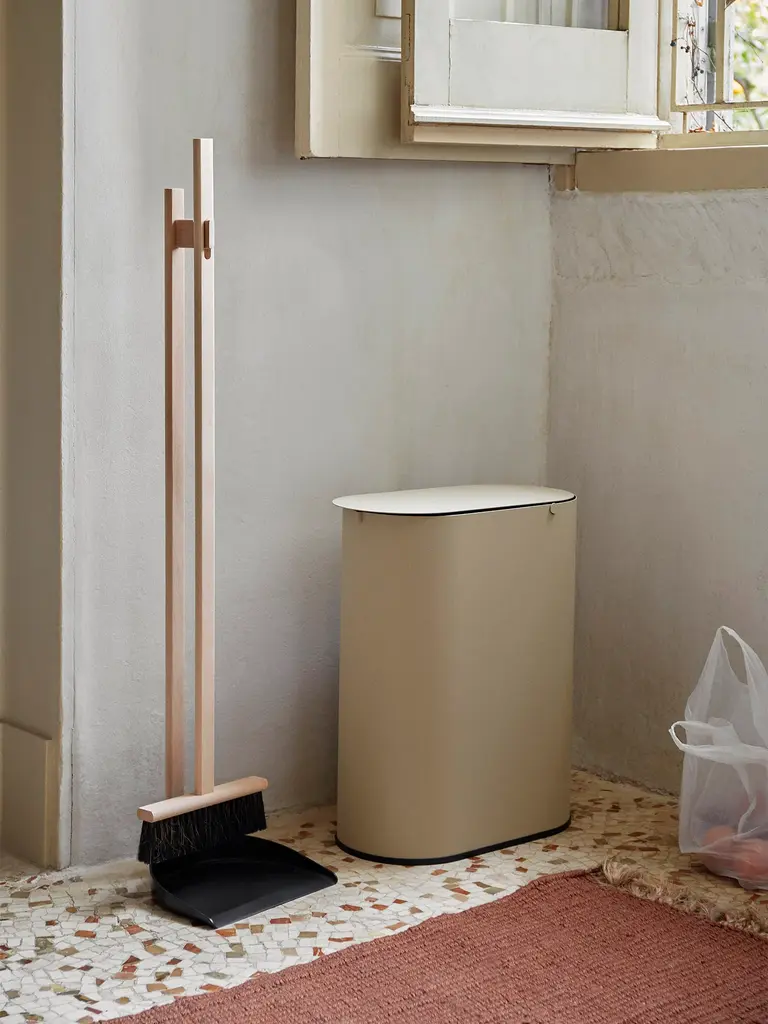 Named after the Danish word for ‘simple,’ the Enkel Bin embodies the perfect blend of functionality and design. This waste management solution is meticulously constructed from powder-coated carbon steel, forming an elegant oval shape. Designed to assist in organizing your household waste, it features a removable inner bin, complete with a convenient metal handle for easy handling during cleaning. This larger variant offers ample space for sorting daily waste or can be repurposed as a practical laundry basket, adapting seamlessly to your living environment.