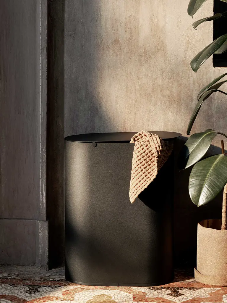 Named after the Danish word for ‘simple,’ the Enkel Bin embodies the perfect blend of functionality and design. This waste management solution is meticulously constructed from powder-coated carbon steel, forming an elegant oval shape. Designed to assist in organizing your household waste, it features a removable inner bin, complete with a convenient metal handle for easy handling during cleaning. This larger variant offers ample space for sorting daily waste or can be repurposed as a practical laundry basket, adapting seamlessly to your living environment.