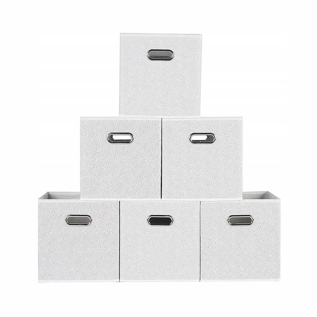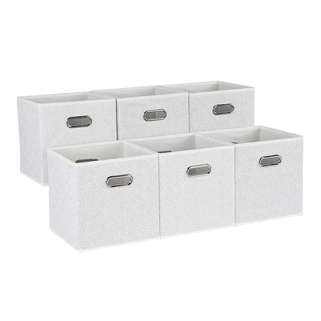 Enova Home Fabric Storage Bins With Metal Handles (Set Of 6) - White