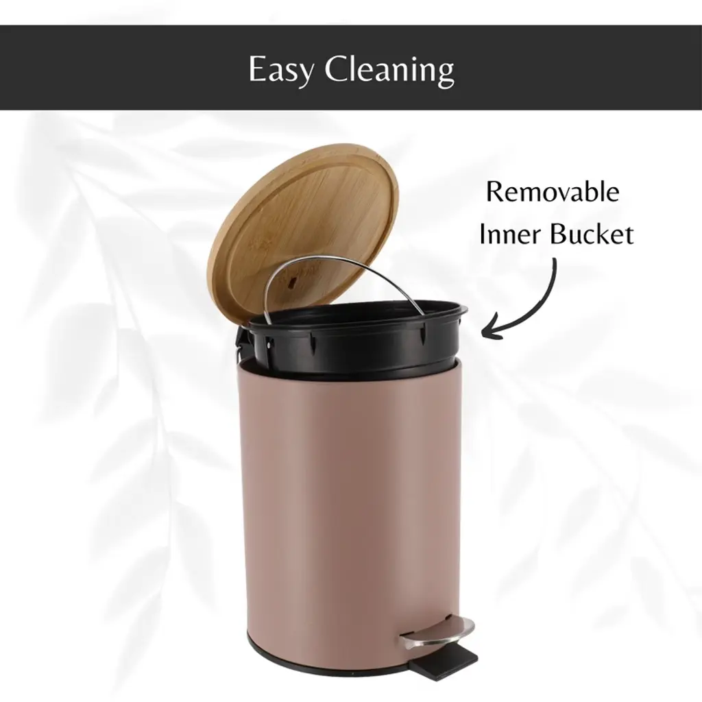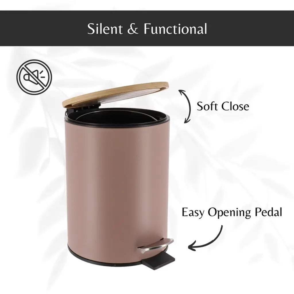 Evideco French Home Goods Cappuccino Trash Can With Bamboo Lid And Pedal, 2.5l Capacity