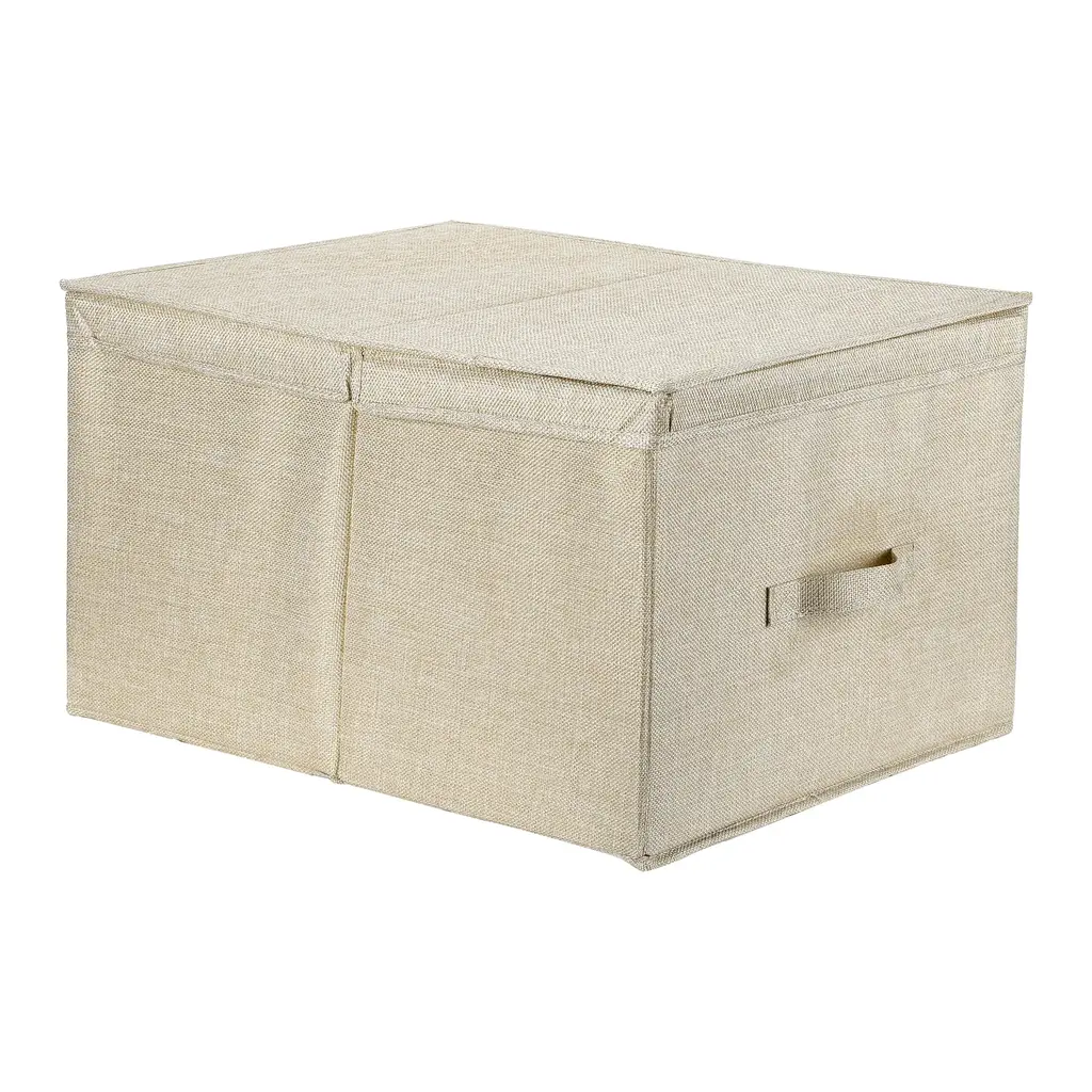 Fabric Storage Bin Cube With Lid And Handle For Shelves Closet, Collapsible Storage Basket For Organizing Clothes Books - Beige - 20*16*11.5in