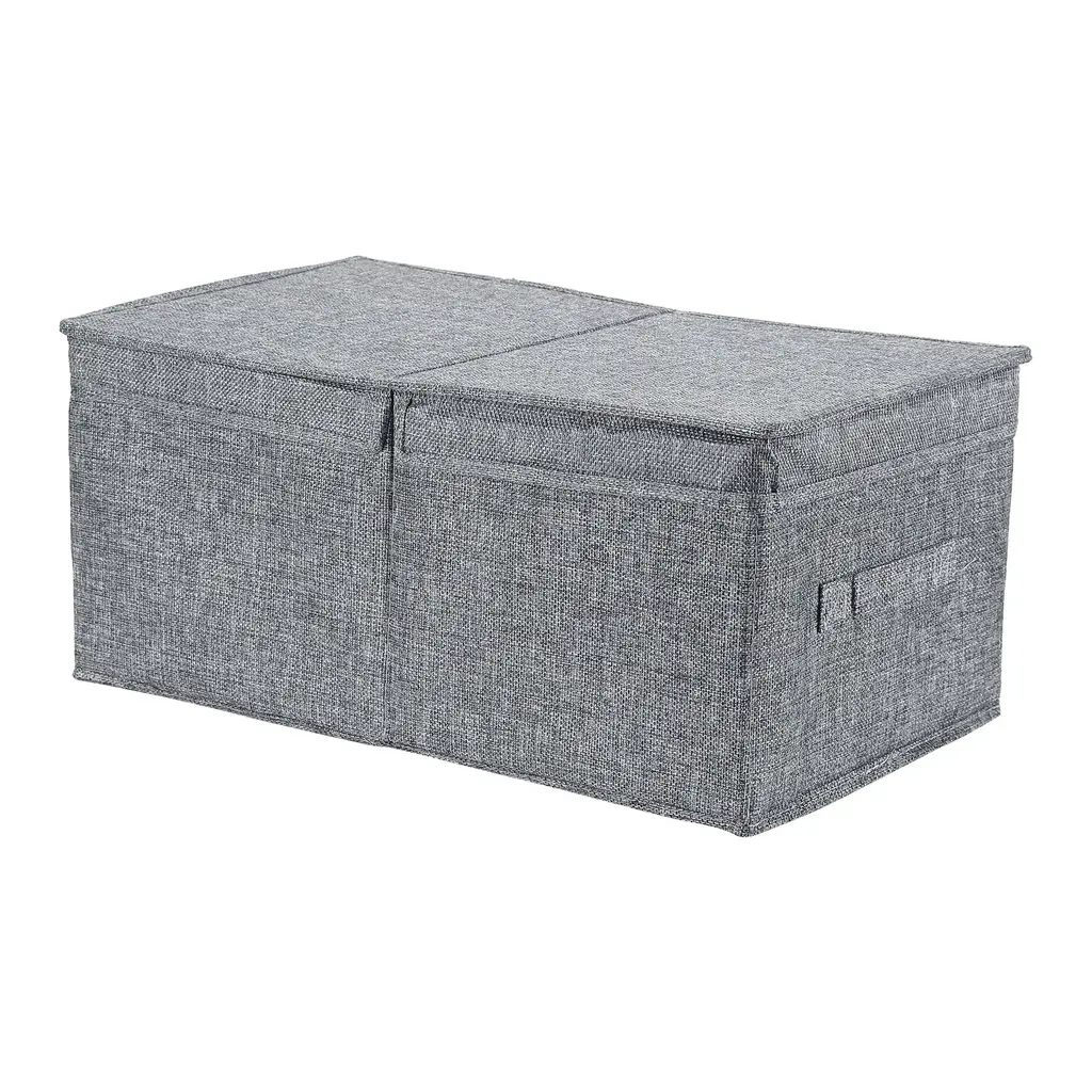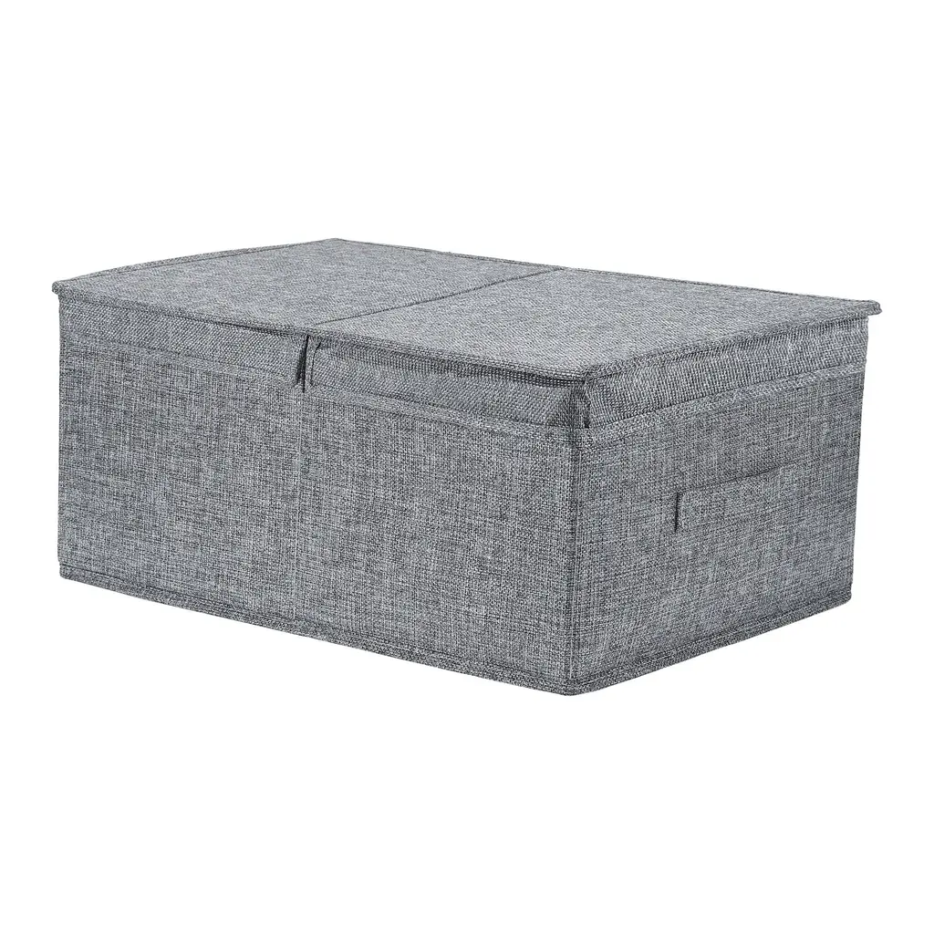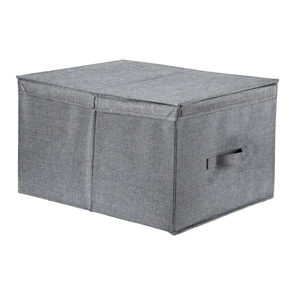 Fabric Storage Bin Cube With Lid And Handle For Shelves Closet, Collapsible Storage Basket For Organizing Clothes Books - Grey - 18.5*11*8in