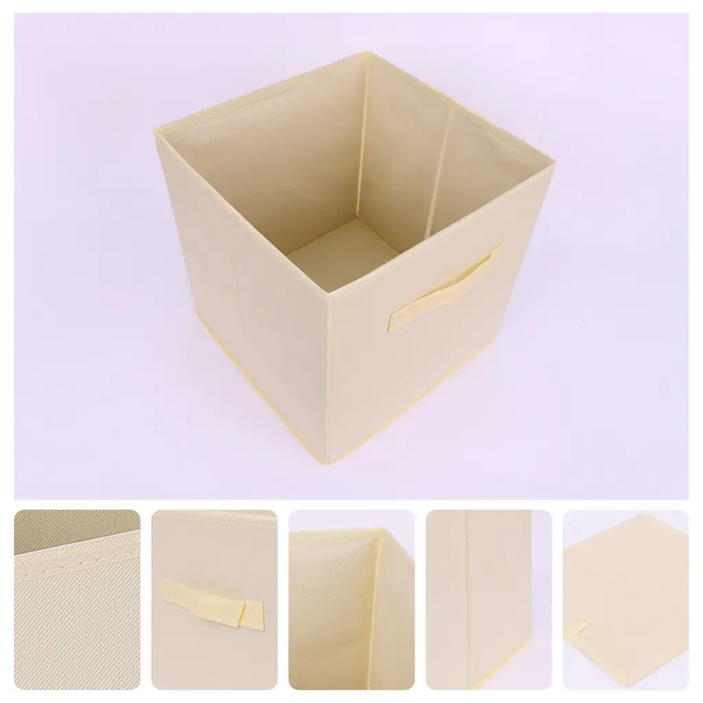 Fabric Storage Cube With Handle, Storage Bin For Shelves Closet, Collapsible Storage Basket For Organizing Clothes Books - Beige - 10*10*10in
