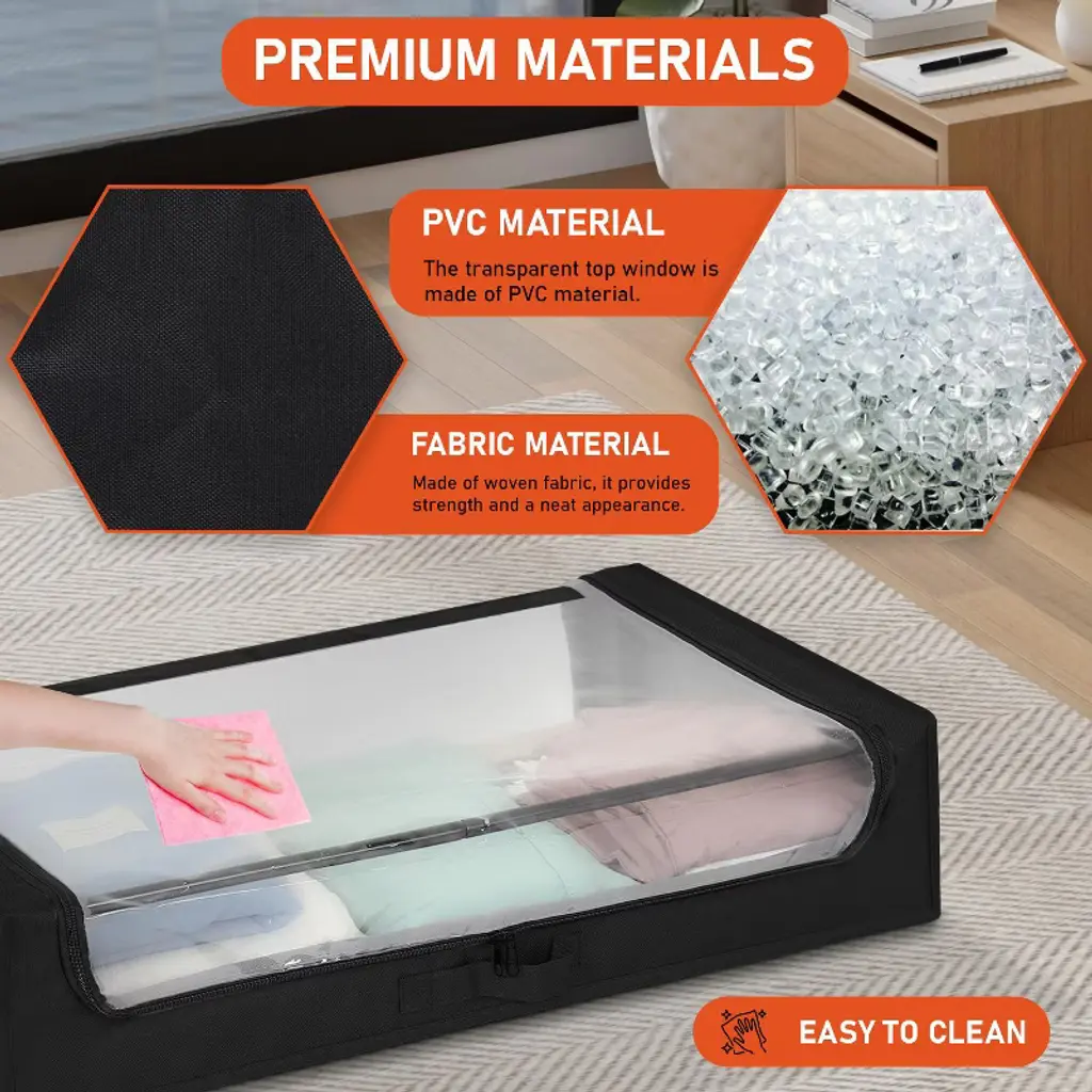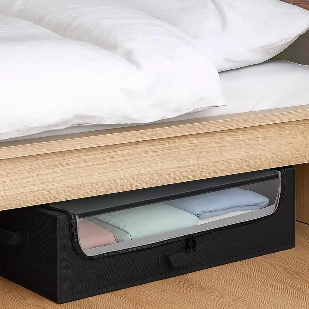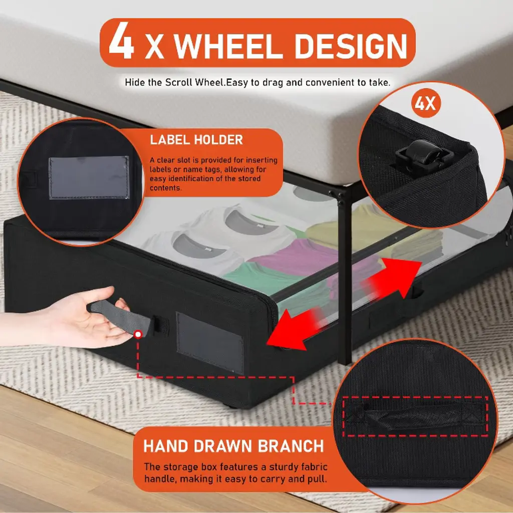 Maximize under-bed space with FDW 2-pack wheeled storage bins, designed for both portability and heavy-duty use. Smart Organization: The transparent PVC top and label slot let you track stored items at a glance—no more digging through bins for lost socks or holiday decor. urable Oxford Fabric: Wear-resistant and tear-proof with reinforced handles for heavy loads. Easy-Access Design: Clear dust-proof zipper cover + two-way zipper for quick retrieval. Ideal for small spaces—keeps items visible and organized.