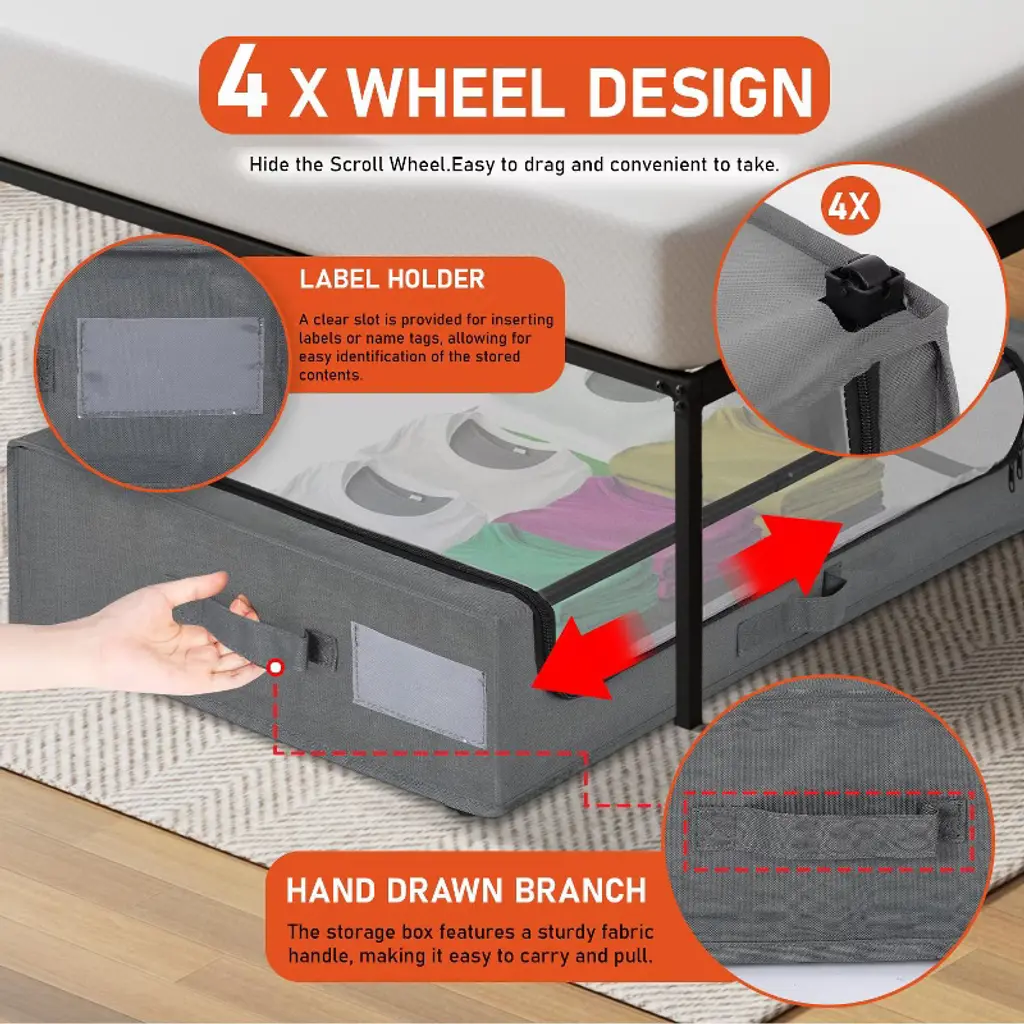 Maximize under-bed space with FDW 2-pack wheeled storage bins, designed for both portability and heavy-duty use. Smart Organization: The transparent PVC top and label slot let you track stored items at a glance—no more digging through bins for lost socks or holiday decor. urable Oxford Fabric: Wear-resistant and tear-proof with reinforced handles for heavy loads. Easy-Access Design: Clear dust-proof zipper cover + two-way zipper for quick retrieval. Ideal for small spaces—keeps items visible and organized.