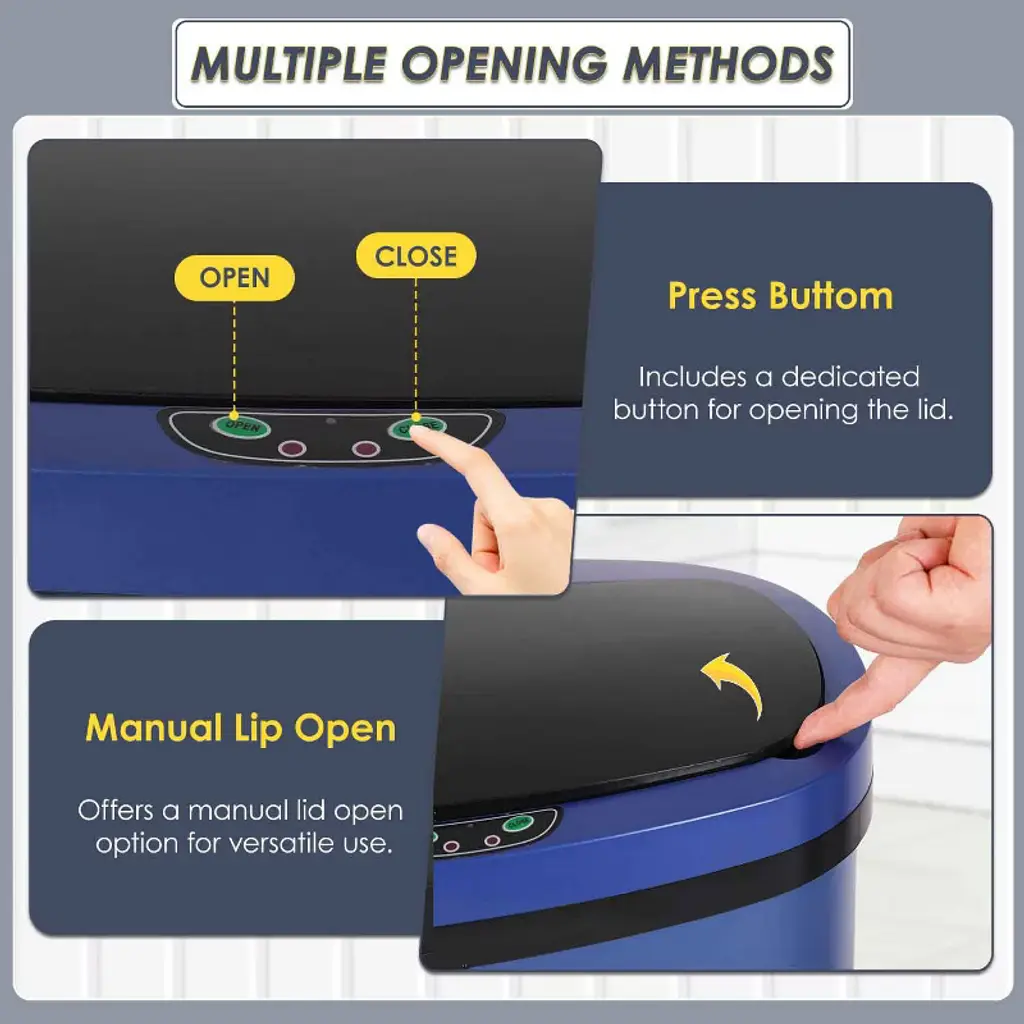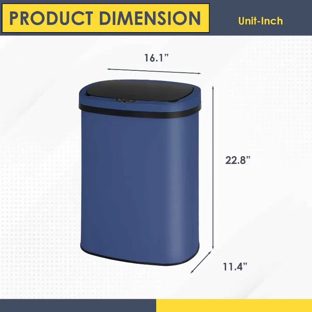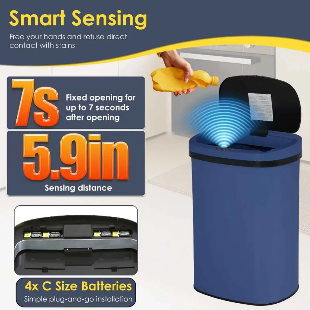 This 13-Gallon touchless trash can is a perfect trash box. With its sensible talents and sophisticated design, this garbage can makes an excellent improve for any kitchen decor. With the equipped infrared technology, this kitchen bin help keep cooking and eating regions easy and smelling sparkling. 5.9" above the infrared panel, the lid will open mechanically Press the manual button OPEN on the manipulate panel, the lid will open all the time, press CLOSE, then it's going to close. Features: Brand New, Fingerprint-resistant brushed chrome steel 13-Gallon Automatic Stainless-Steel Trash Can On/off button and an open close button for whilst you need the lid to stays open and sensor off Anti-fingerprint business grade chrome steel, high-quality for kitchen, workplace, residing room and bedroom. The battery model required for the lid needs to be selected according to the problem tips in the lid (not covered)
