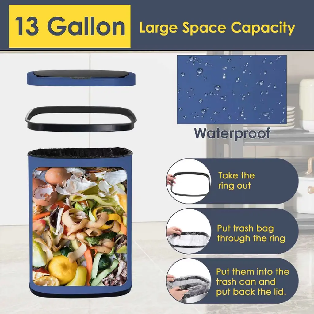 Fdw Kitchen Trash Can With Lid, 13 Gallon Automatic Garbage Can For Bathroom Bedroom Home Office 50 Liter Touch Free Stainless Steel Waste Bin,deep