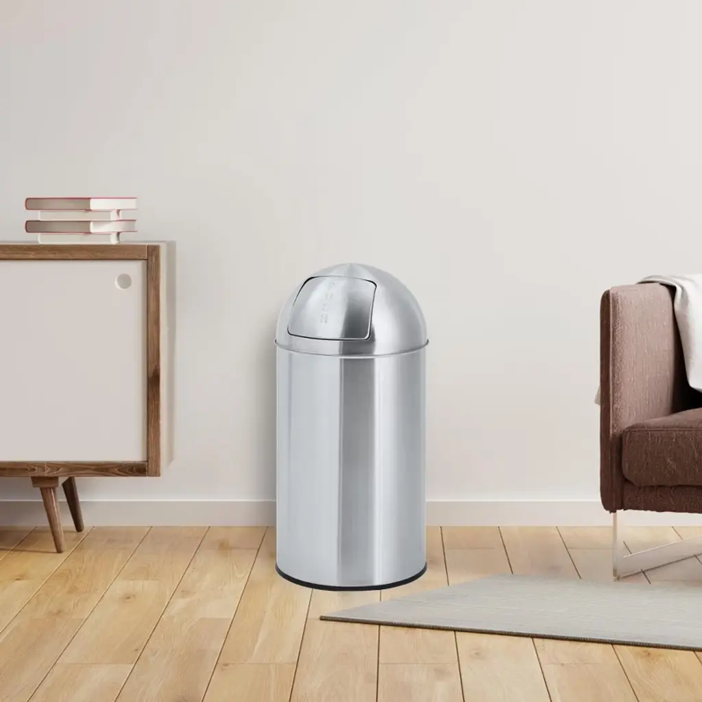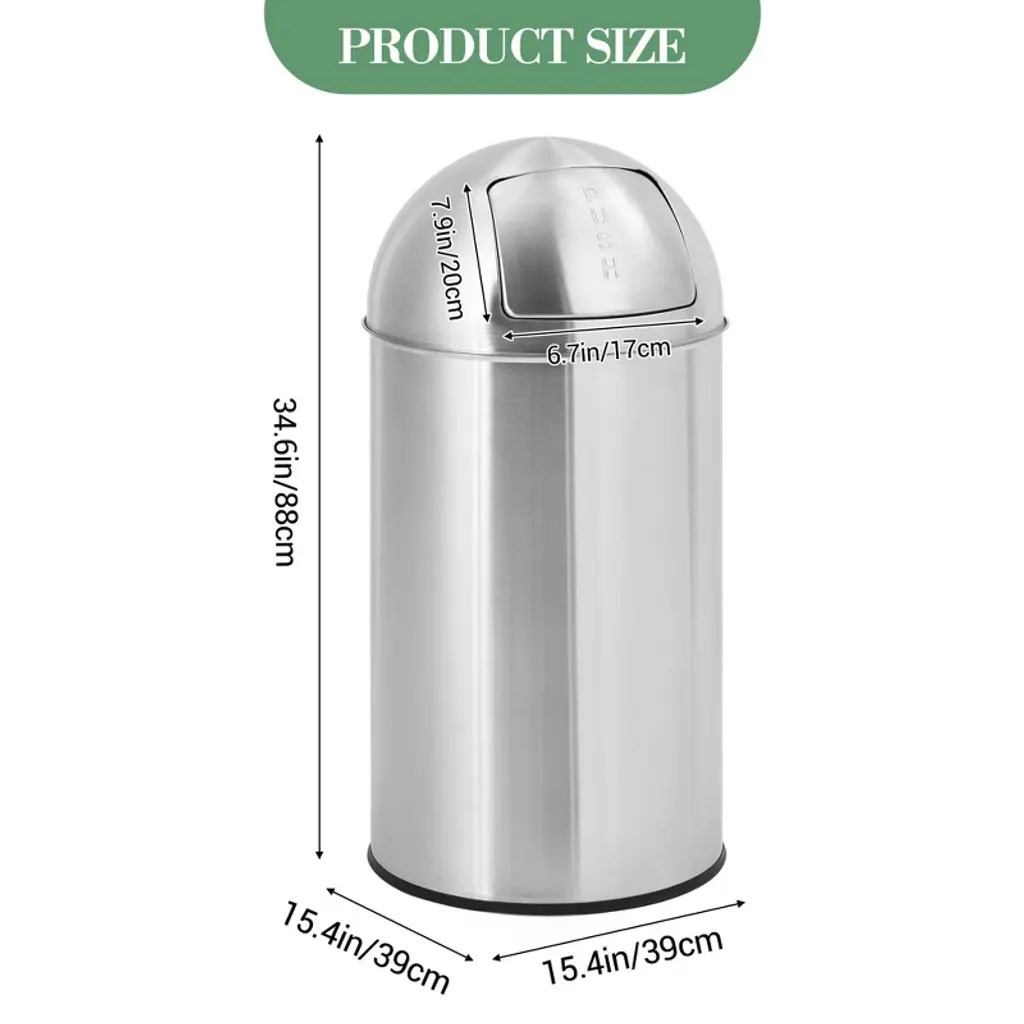 Fingerprint-proof Stainless Steel Garbage Can With Push Lid, Heavy Duty Tall Waste Bin