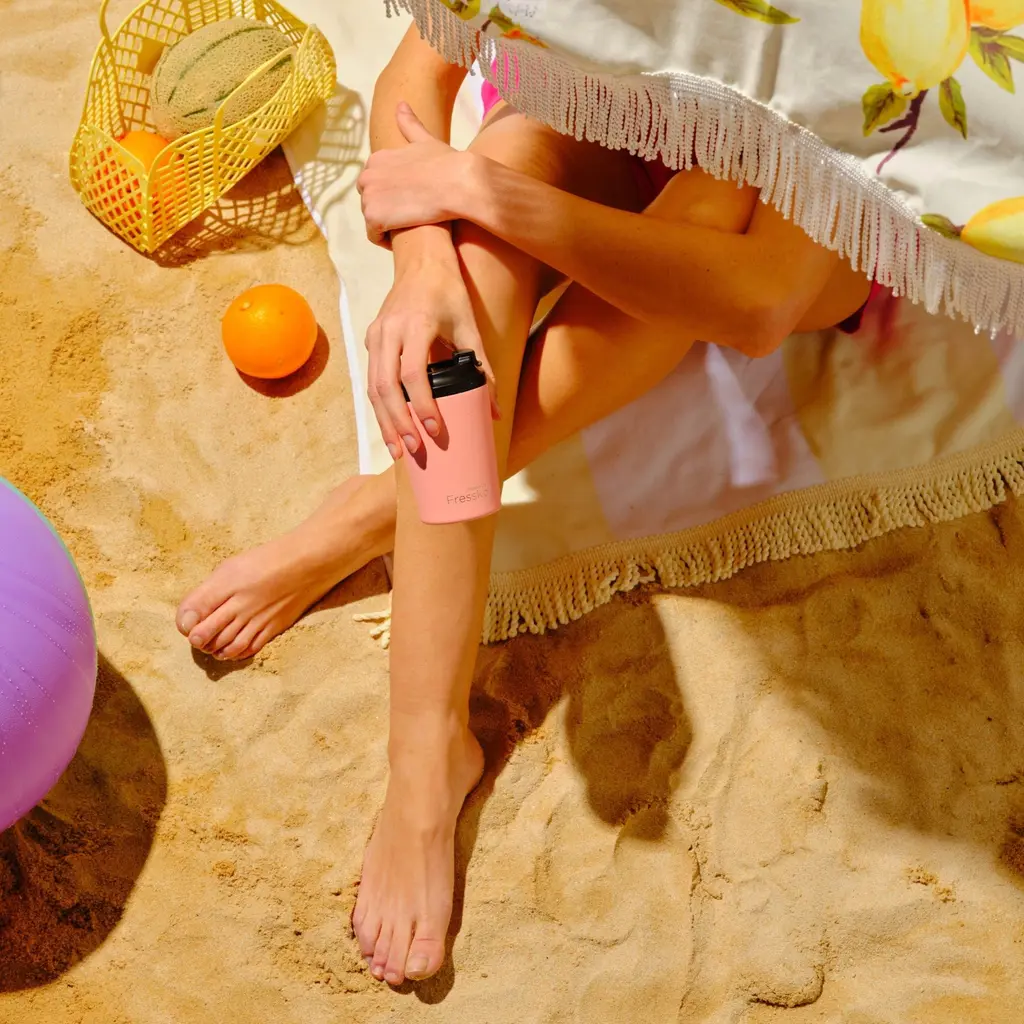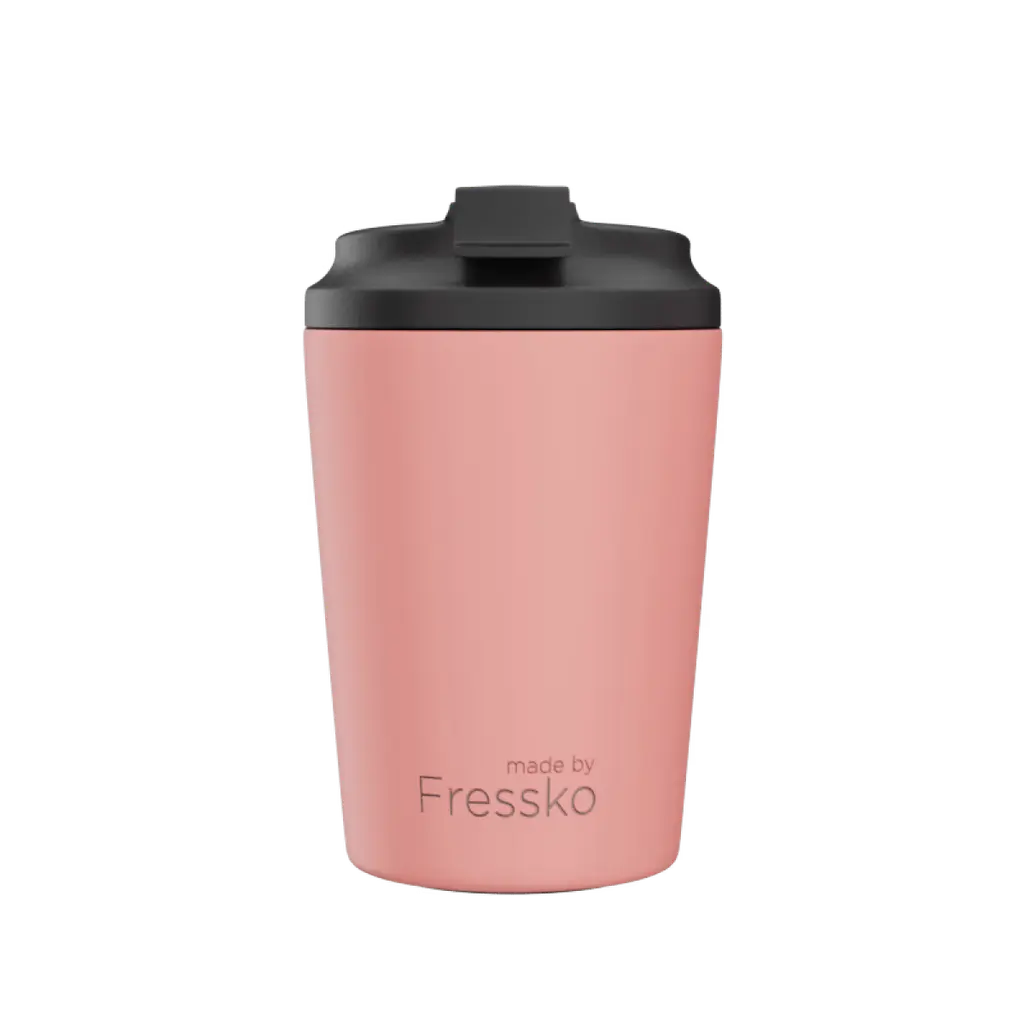 Simply the world's best reusable coffee cup. Often imitated never copied, the world-renowned original Fressko coffee cup is destined to become a trusted and stylish addition to your everyday carry. Say no to excessive waste and yes to sipping more sustainably today, tomorrow and forever.Features:Stays hot for up to 3 hours, depending on use.Insulated for cold drinks, too.Easy clean, no fuss, click back lid.Internal Barista lines.Fits under standard coffee machines.Fits in a standard car cup holder.Ideal for travel.Sip hot beverages safely around young children.The outer stays cool to the touch.Compatible with the Fressko Leather Sleeve, for extra comfort.Designed in Melbourne, Australia.Responsibly made in China.