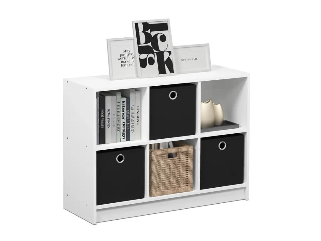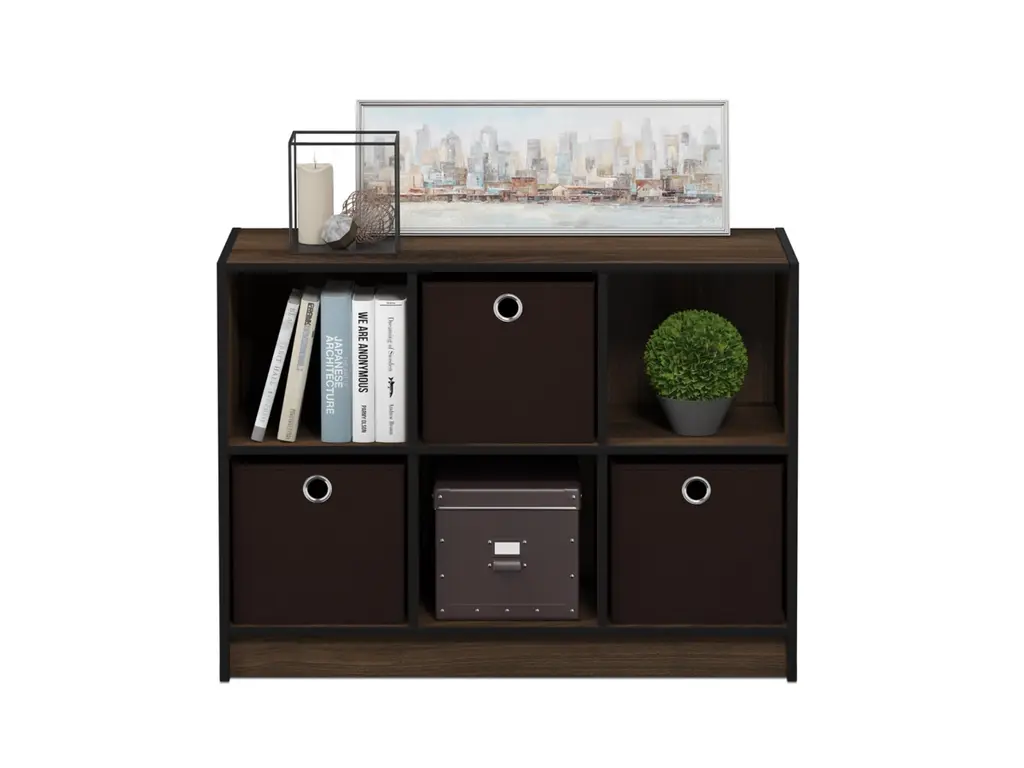 A simple storage solution with understated style, this Furinno basic 3x2 bookcase storage with bins keeps things tidy and chic in any space. Designed to take organization to the next level and for use anywhere in your home, this stylish organizer can hold small items, pictures, and keepsakes, or accent with the standard sized fabric drawers and storage. This basic 3x2 bookcase storage with bins is easy assembly with step by step instruction. Care instructions: wipe clean with clean damped cloth. Avoid using harsh chemicals. Pictures are for illustration purpose. All decor items are not included in this offer.