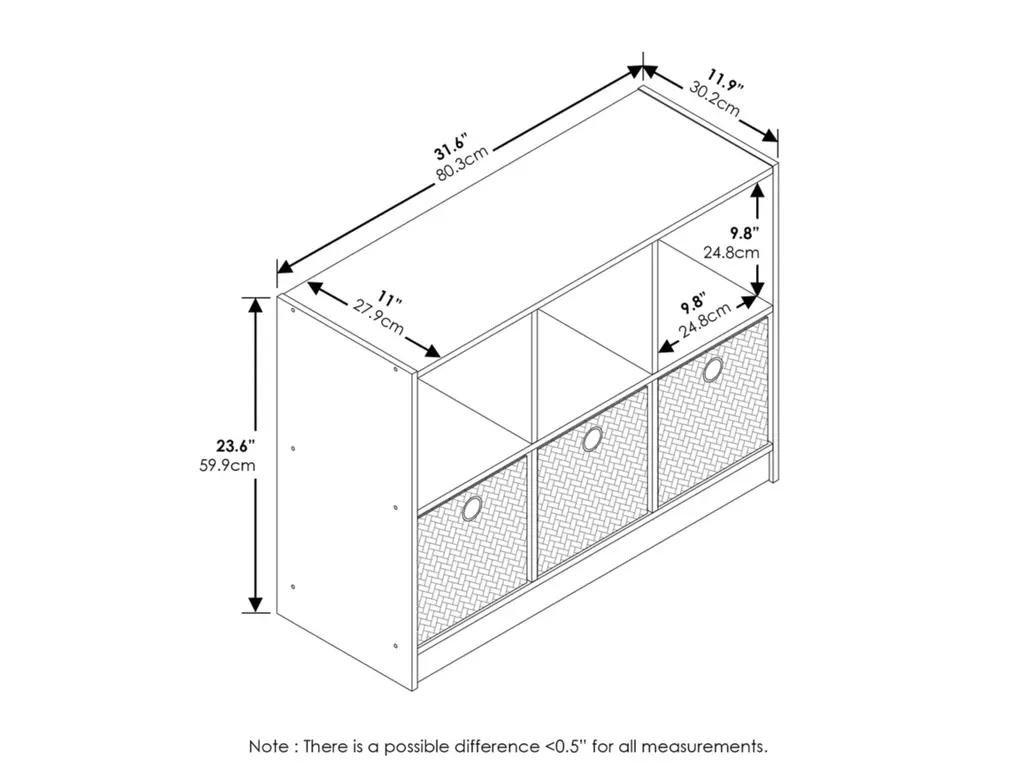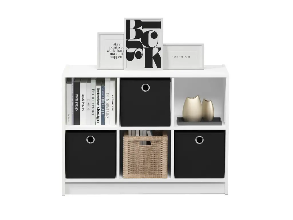 A simple storage solution with understated style, this Furinno basic 3x2 bookcase storage with bins keeps things tidy and chic in any space. Designed to take organization to the next level and for use anywhere in your home, this stylish organizer can hold small items, pictures, and keepsakes, or accent with the standard sized fabric drawers and storage. This basic 3x2 bookcase storage with bins is easy assembly with step by step instruction. Care instructions: wipe clean with clean damped cloth. Avoid using harsh chemicals. Pictures are for illustration purpose. All decor items are not included in this offer.