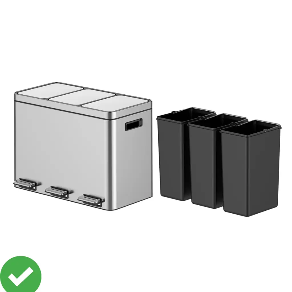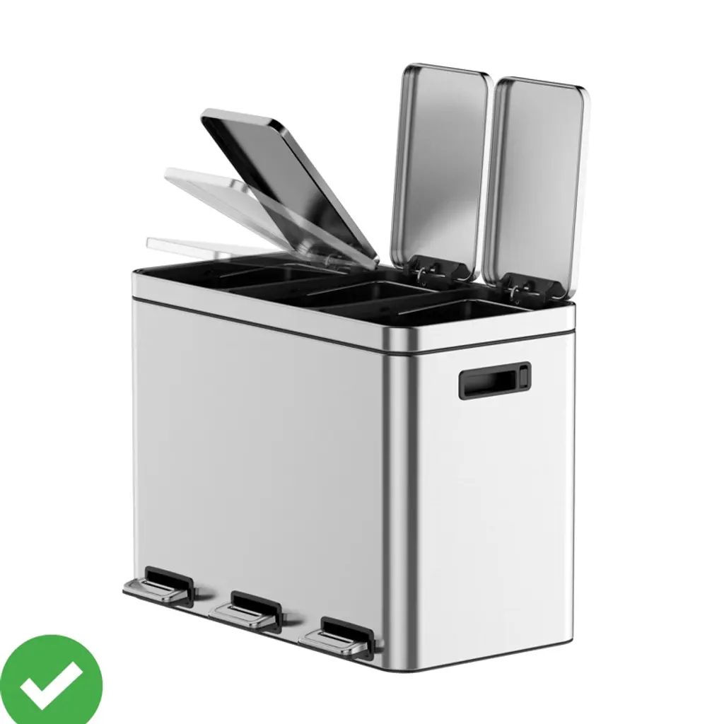Rectangular Recycling Trash Can with Removable Plastic Inner Buckets, Stainless Steel Double Trash Can Soft-Close Lid Step-on Garbage Bin Fingerprint-Proof Design for Kitchen/Office, 2/3 Separate Compartments: With 2/3 separate compartments, this bin allows you to easily sort your trash and recyclables in one convenient bin, streamlining the waste disposal process and making recycling easier and more organised.