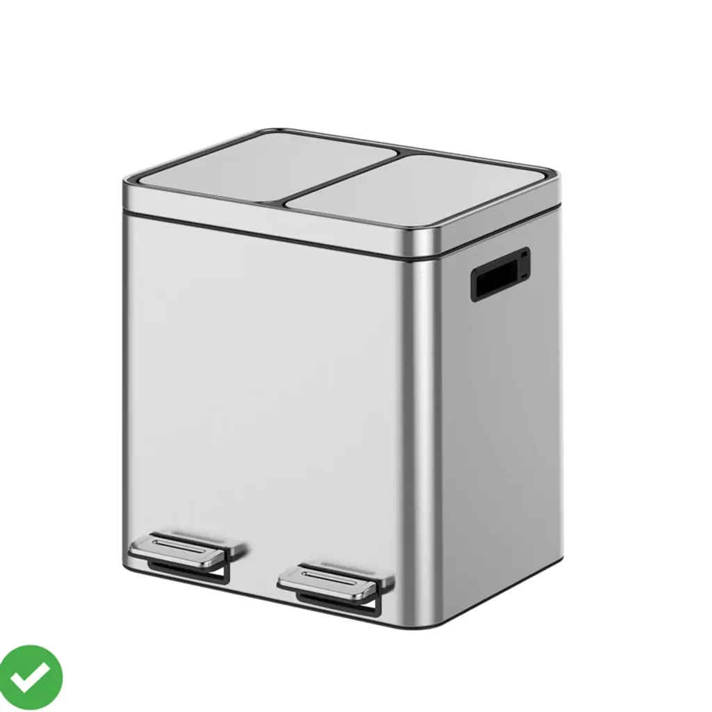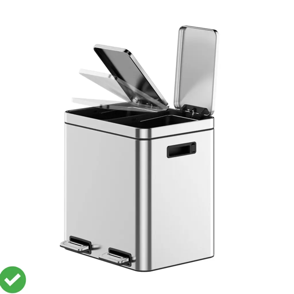 Rectangular Recycling Trash Can with Removable Plastic Inner Buckets, Stainless Steel Double Trash Can Soft-Close Lid Step-on Garbage Bin Fingerprint-Proof Design for Kitchen/Office, 2/3 Separate Compartments: With 2/3 separate compartments, this bin allows you to easily sort your trash and recyclables in one convenient bin, streamlining the waste disposal process and making recycling easier and more organised.