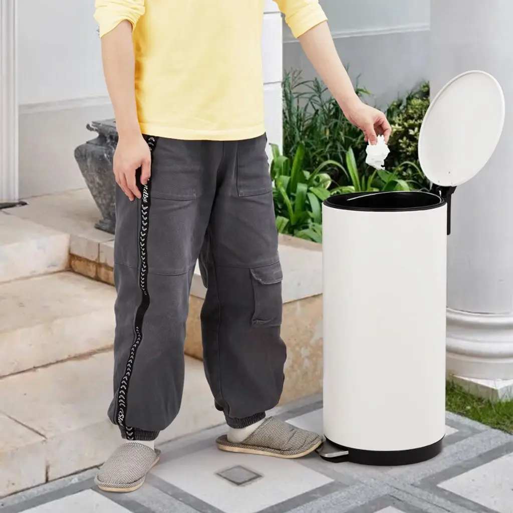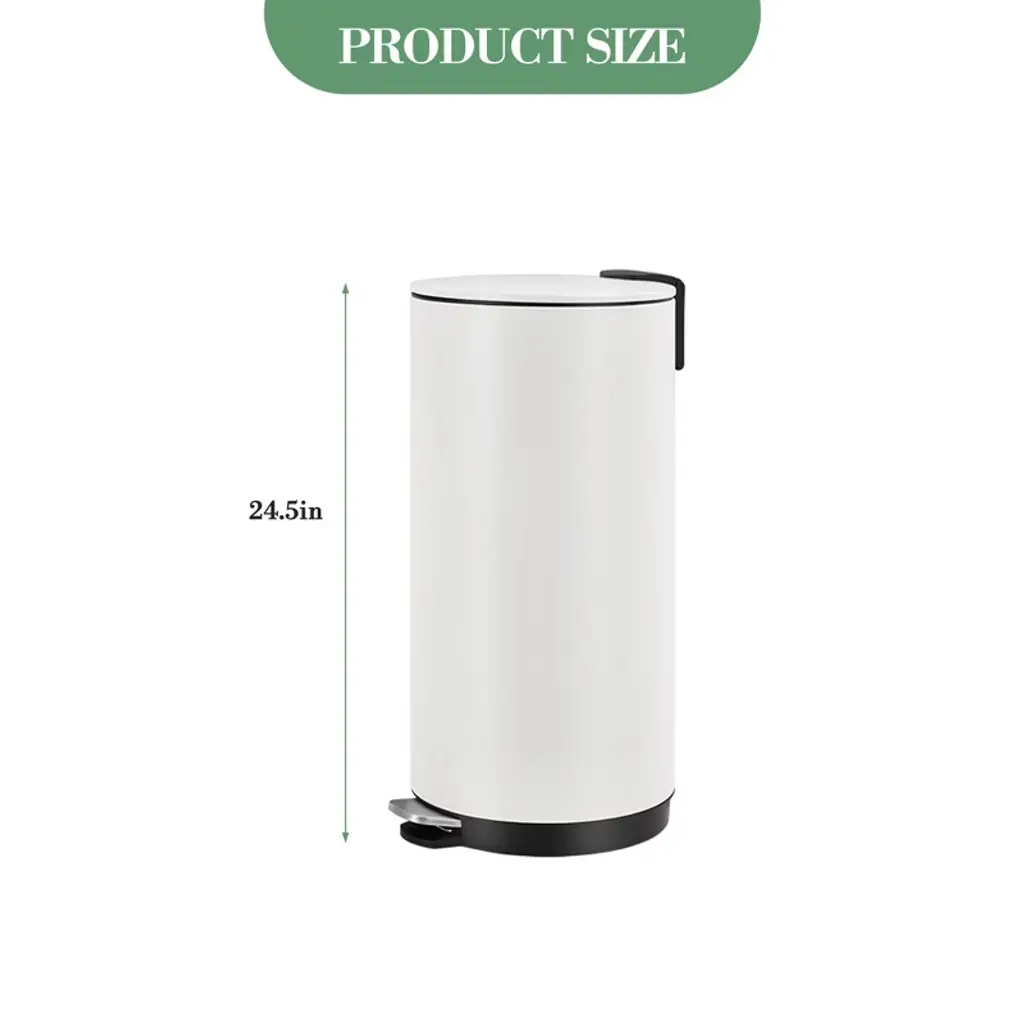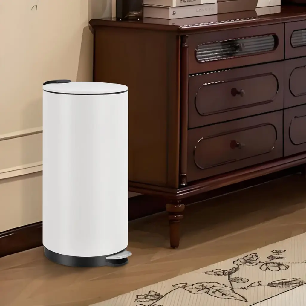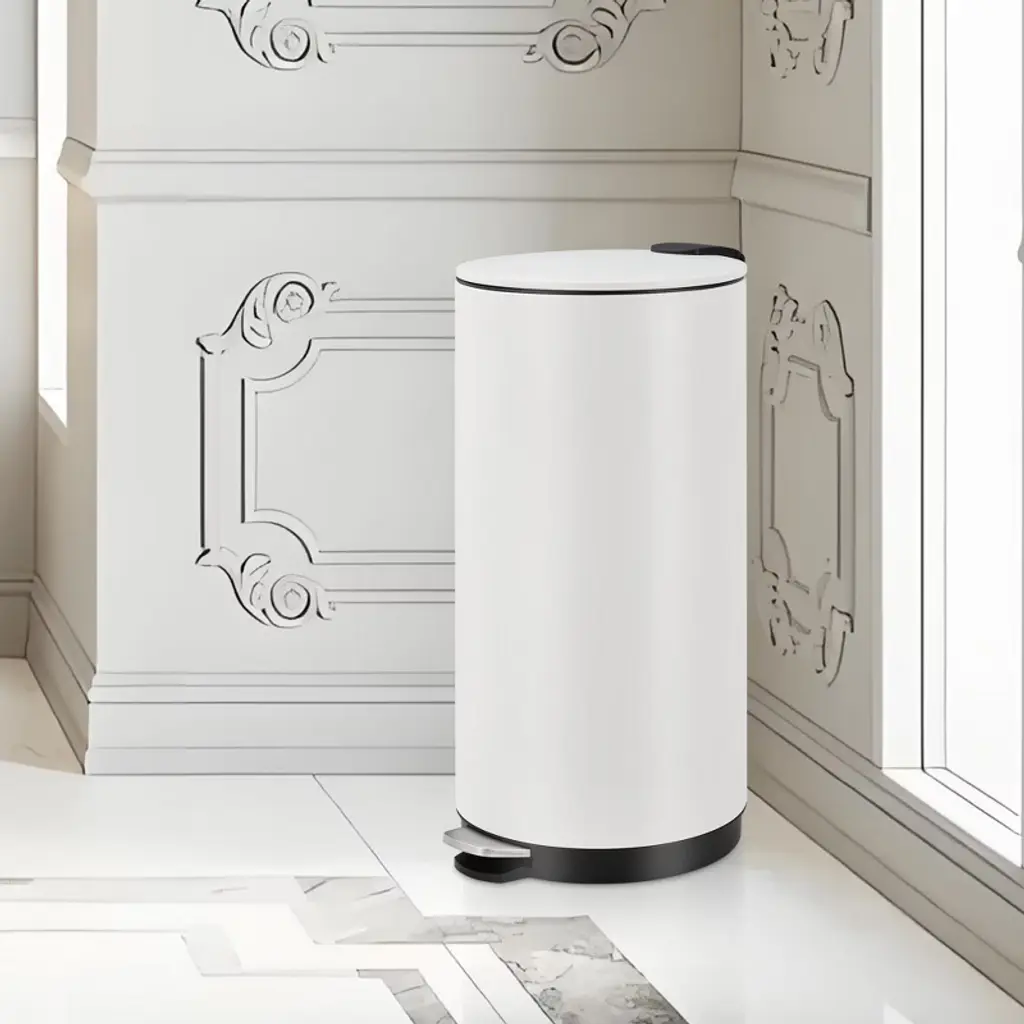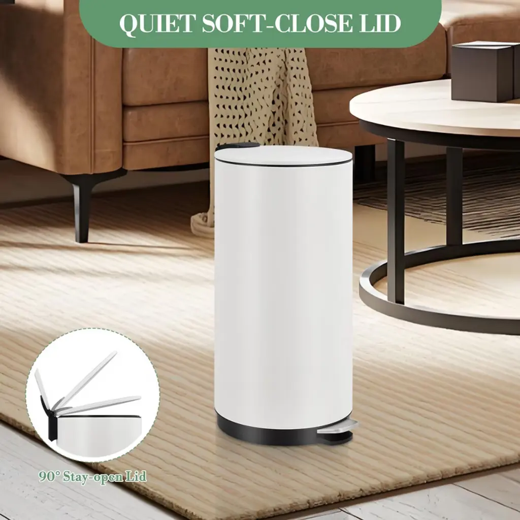 This 7-gallon premium trash can redefines effortless waste management with its seamless fusion of hygienic innovation and understated elegance, featuring a leak-proof removable inner bucket for swift, mess-free disposal and an ergonomic foot pedal enabling truly touchless lid operation—ideal for maintaining immaculate sanitation in bathrooms, kitchens, or nurseries. Experience library-quiet functionality through advanced slow-close technology that silences lid movement, preserving tranquility during late-night use, while the fingerprint-resistant exterior effortlessly repels smudges and spills, requiring only a quick wipe to restore its sleek silhouette. Designed to elevate compact spaces, its space-conscious circular profile harmonizes with modern bedrooms, offices, or living room décor, transforming mundane chores into a refined ritual where cutting-edge engineering meets timeless sophistication—all within a single, gracefully engineered vessel built for enduring performance and aesthetic cohesion.