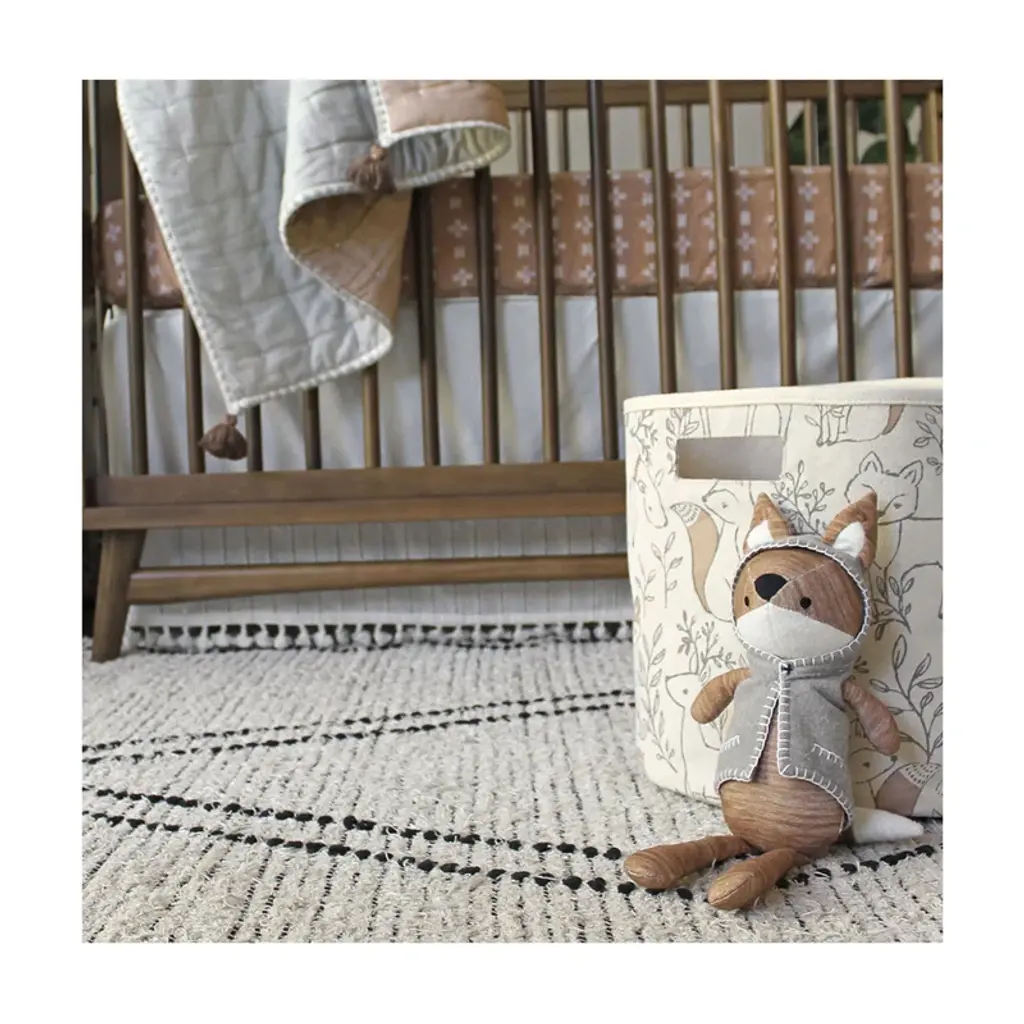 The Ezra storage bin depicts softly drawn animals in a lovely neutral pallet that is sure to compliment any nursery. It’s 100% cotton and can hold a wide array of items. It can be a moveable supply space for a changing station, an easy place for keeping toys, or even just a spot for the baby’s many treasures that they collect from around the house. No matter what you keep in the bin, it’s sure to keep the nursery much tidier. The bin will also pair beautifully with many of our baby bedding sets as well as our nursery wall art.