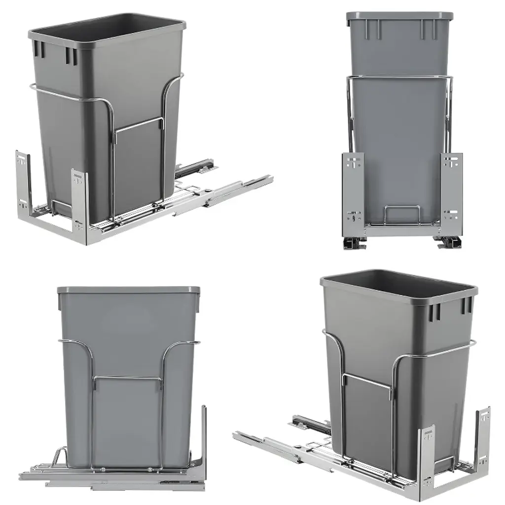 Gustowave 30 Qt Pull-out Under Cabinet Trash And Recycling Bin With Soft-close Full-extension Slides, Door