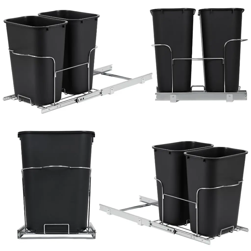 Gustowave Double Black 2X35qt Pullout Trash Can With Full-extension Slides, Handle Model - Fits Cabinets 16.10x24.8x29.84 Inches