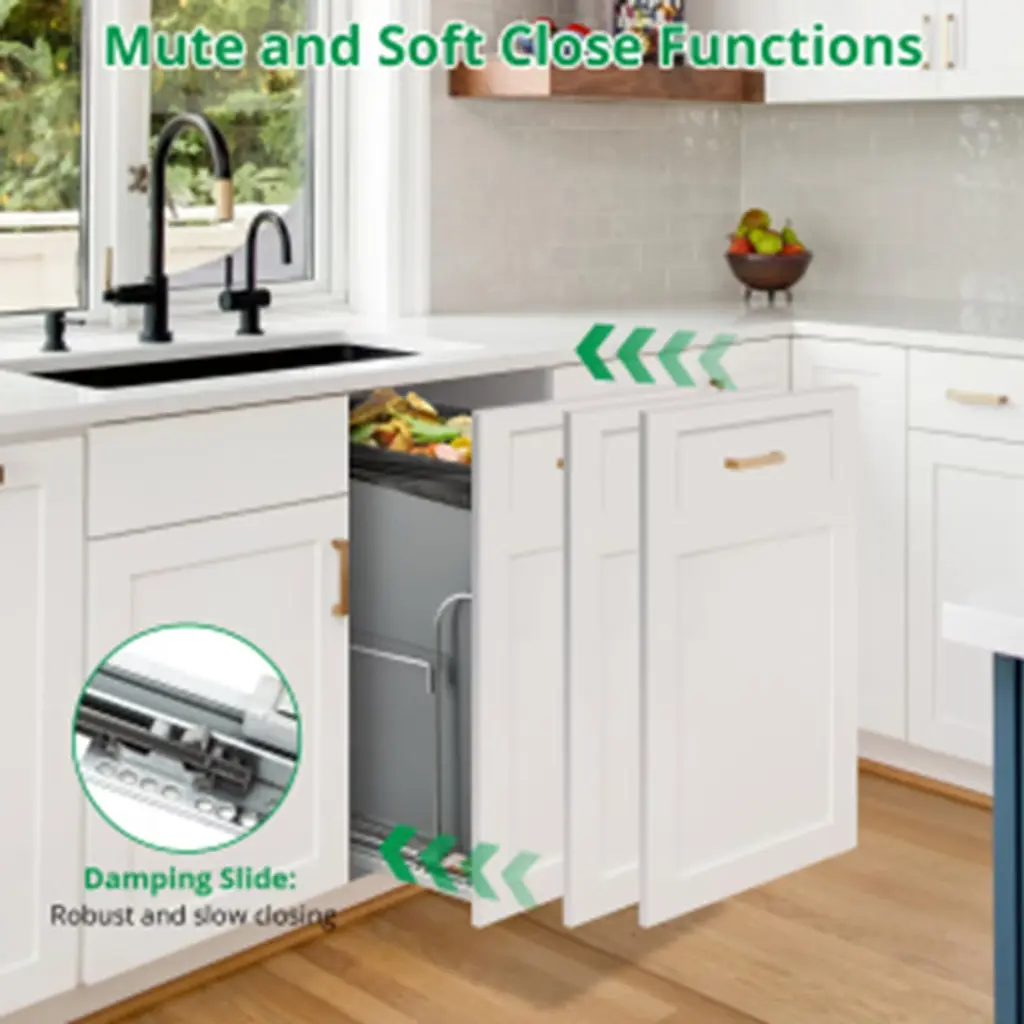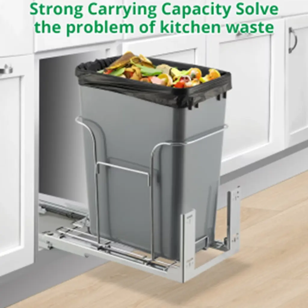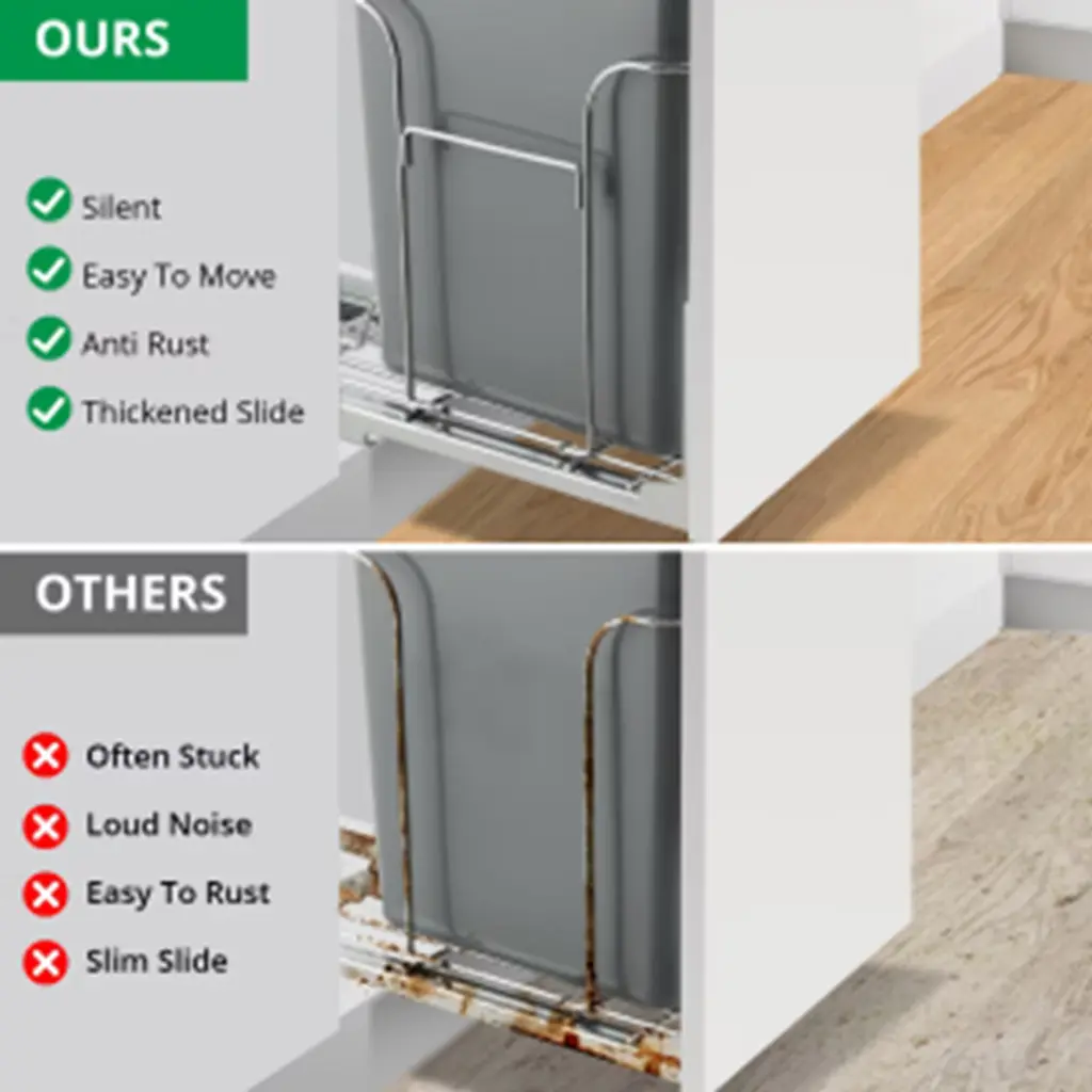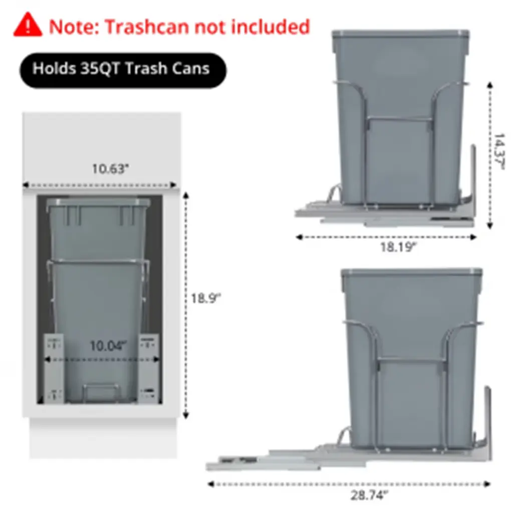 Gustowave Stainless Steel Under Sink Slide-out Trash Can Rack For 35 Litre Trash Cans, Soft-close, Trash Can Not Included