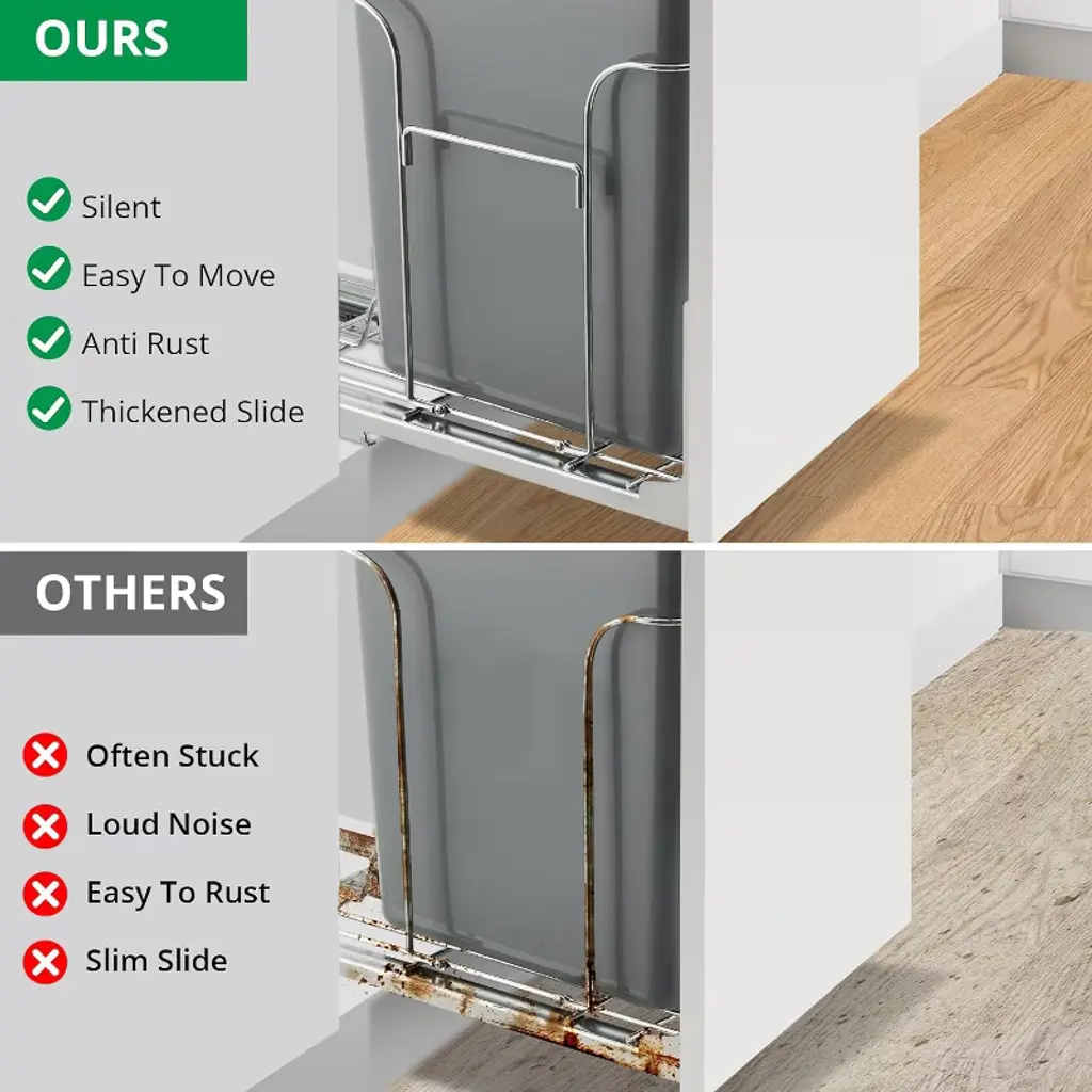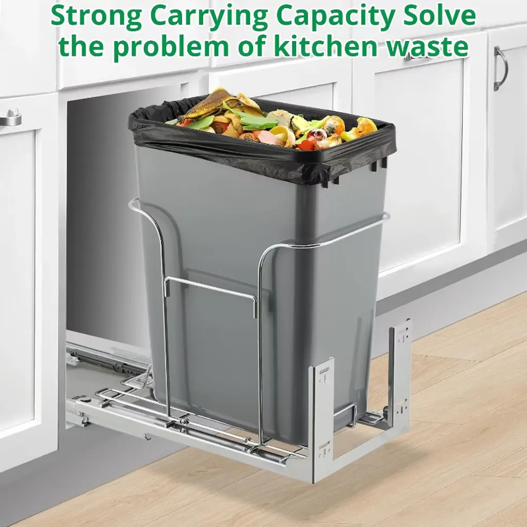 Gustowave Stainless Steel Under Sink Slide-out Trash Can Rack, Suitable For 30 Litre Trash Cans, With Damping, Trash Can Not Included
