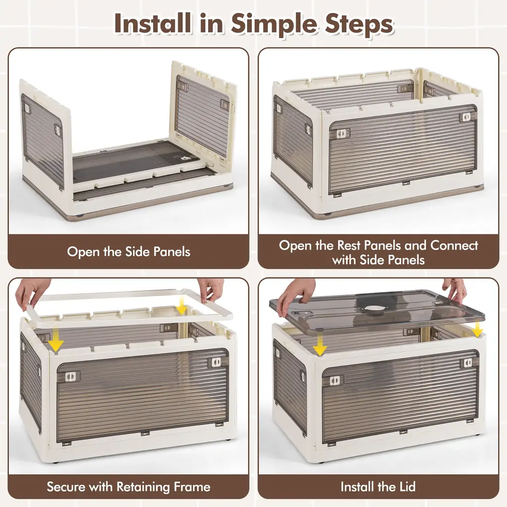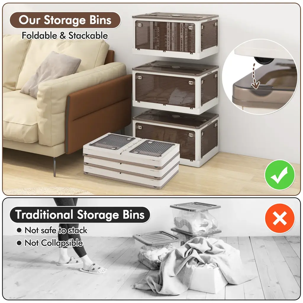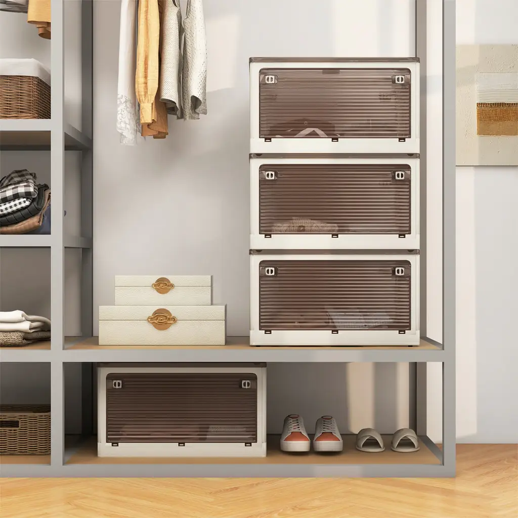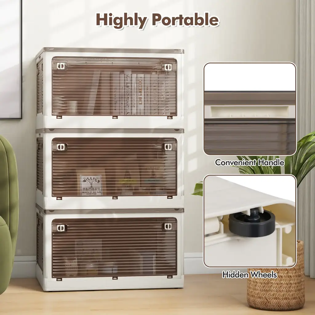 Discover the perfect home organization solution! This 6-pack storage bin set is a game-changer, offering a whopping 24-gallon capacity combined! Perfect for stashing everything from winter wear to sports gear, it simplifies organization with 5 convenient access points, including a smart desiccant compartment to keep contents fresh. No tools? No problem! Set up is a breeze with our foldable, ready-to-go design. Maximizing your space? Stack them up or spread them out - however you like! Plus, moving them around is smooth and effortless with built-in wheels and handles. Click now to transform clutter into a tidy haven with our versatile storage bins!Features:Large capacity for linen, snacks, books and even shoes 5 opening ways offer easy access to the items inside Tool-free assembly saves you time and effort Collapsible bins can be folded when not in use Stackable design allows you to combine the boxes as neededColor: Cream White + Clear Brown Material: PP, HIPS Dimensions of Each Bin: 18.5'' x 14'' x 9.5'' (L x W x H) Height of 3 Stacked Bins: 28'' Dimensions of Folded Bin: 18.5'' x 14'' x 3'' (L x W x H) Dimensions of Front Door: 16'' x 5.5'' (L x W) Capacity of Each Bin: 8 Gal Total Capacity: 24 Gal Load Capacity: 165 lbs Net Weight: 22 lbs Package Includes: 6 x Storage Bins 2 x User's Manual