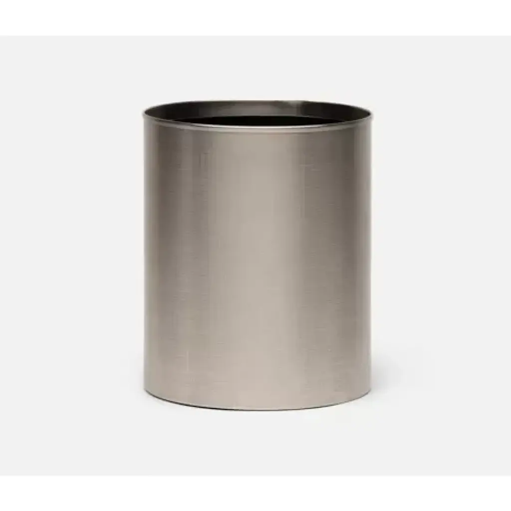 Hagen Shiny Nickel Wastebasket Round: 9"d X 11"h