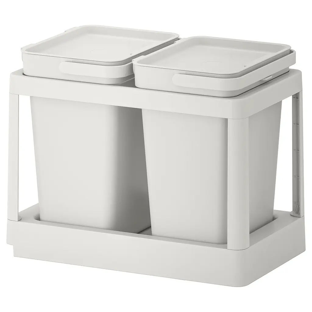 HÅLLBAR Recycling solution - with pull-out/light gray 5 gallon. HÅLLBAR bins are designed to meet different recycling needs. This narrow combination is suitable if you have limited space and choose to sort your waste at the recycling station. To be mounted at the bottom of a cabinet.