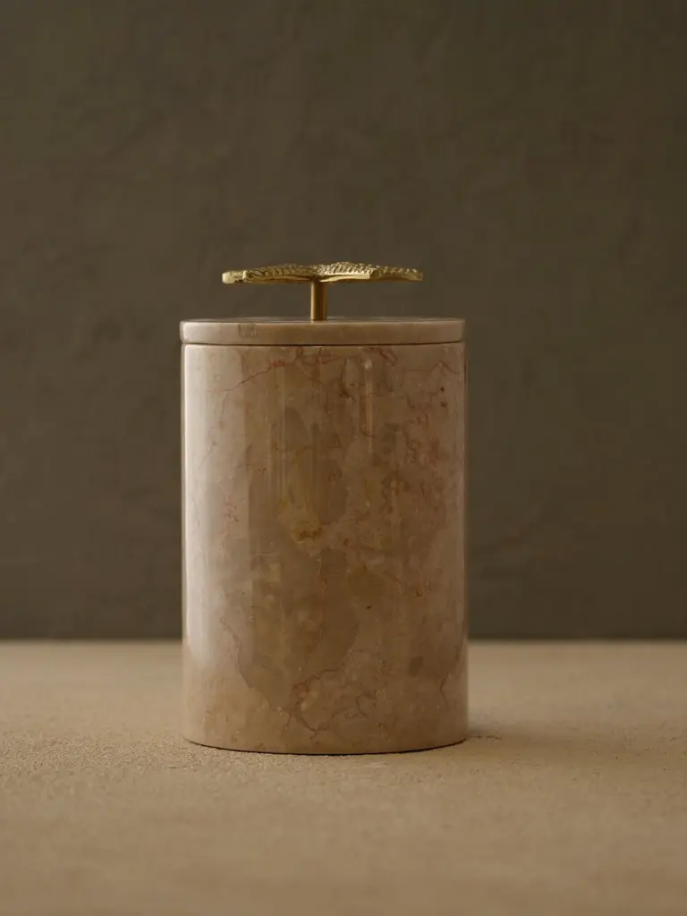 The Marble Waste Bin with Brass Starfish Handle brings coastal charm and refined luxury to everyday utility. Crafted from smooth beige marble, its minimalist cylindrical form is topped with a whimsical brass starfish handle—adding a hint of marine inspiration to your bathroom or dressing area. The rich, earthy tones of the stone and golden detailing create a harmonious blend of natural texture and decorative flair. Ideal for elegant, serene interiors that embrace artisanal craftsmanship.