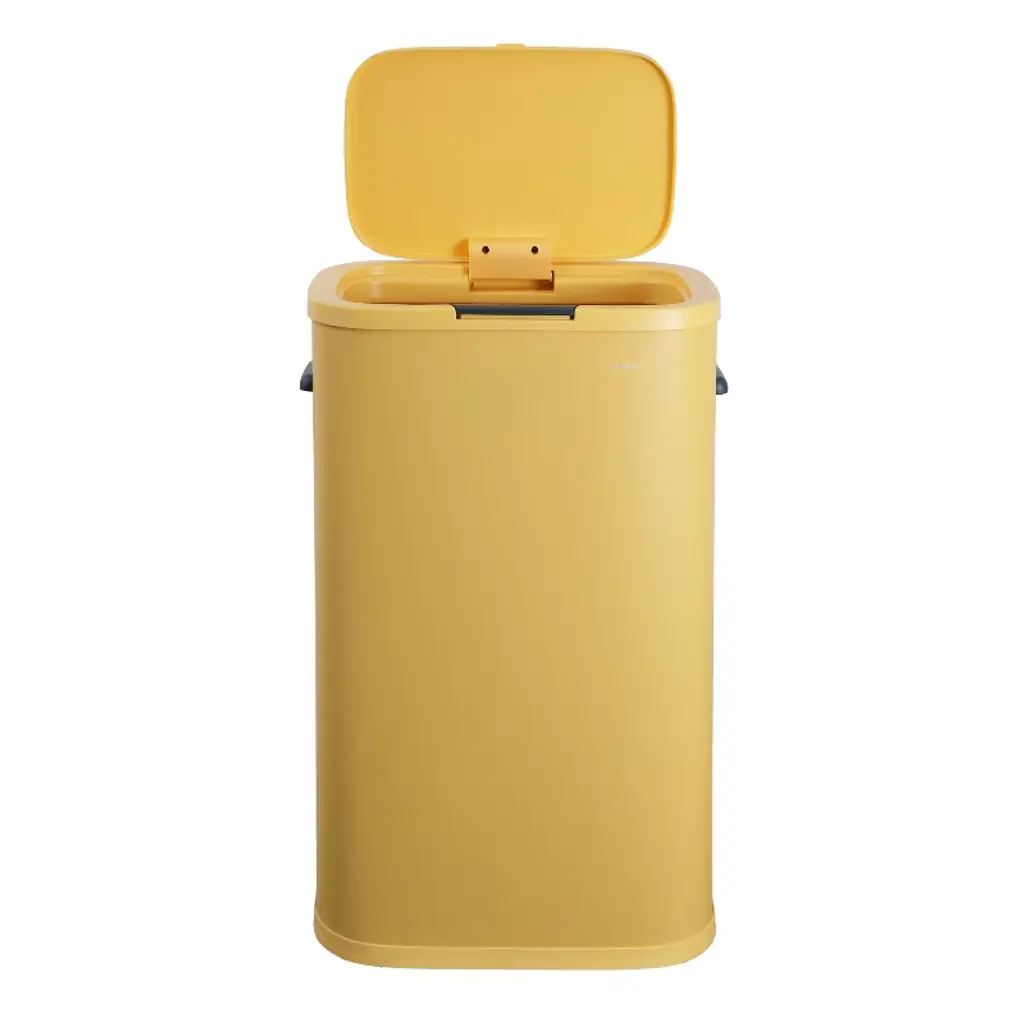 Happimess Tammi Kitchen 14.5-gallon Slim Metal Push Button Trash Can, Daffodil Yellow