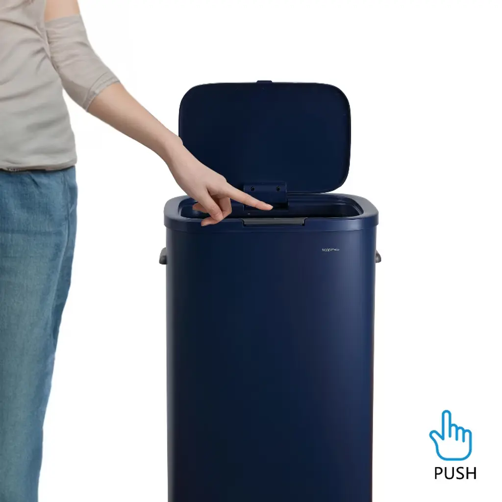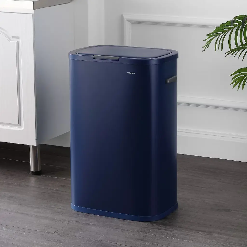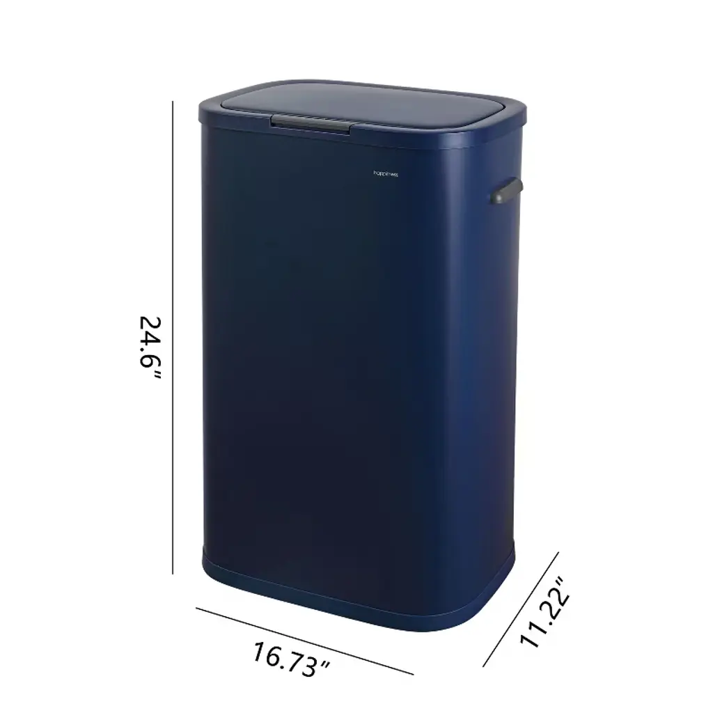 Happimess Tammi Kitchen 14.5-gallon Slim Metal Push Button Trash Can, Denim Blue