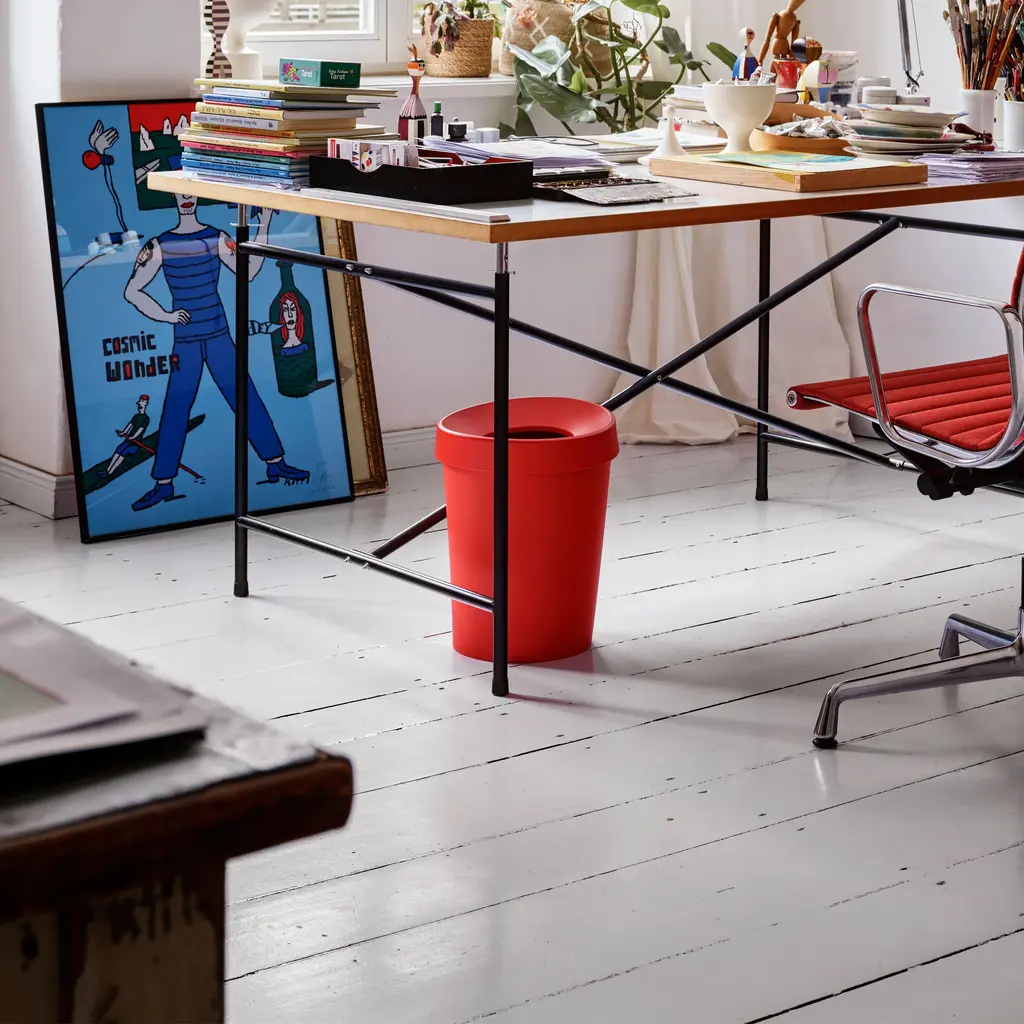 The Happy Bin RE from Vitra combines a playful aesthetic and environmentally conscious manufacturing for a unique office accent. Use plastic packaging is sorted, cleaned, and shredded, then blended with tiny specks of pigment for a unique look and durable build. Inspired by a Hans Arp sculpture, Swiss designer Michel Charlot created a cheerful, sculptural wastebasket meant to enliven any interior. Highlights