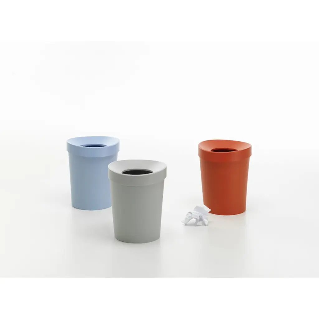 Vitra's Happy Bin RE is designed by Michel Charlot. Inspired by cartoons and sculptures, the bin brings a delightful playfulness to a busy business environment. The Happy Bin's asymmetrical shape makes it ideal not only for the office but also for the bathroom, kitchen or bedroom. The bin has a convenient lid with a hole in the middle. The stylish Happy Bin RE is made entirely of recycled plastic. The eco-friendly material derives from post-consumer recycled plastic, namely plastic packaging from household waste. At the end of its lifecycle, the paper bin is also 100% recyclable.