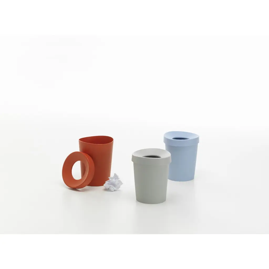 Vitra's Happy Bin RE is designed by Michel Charlot. Inspired by cartoons and sculptures, the bin brings a delightful playfulness to a busy business environment. The Happy Bin's asymmetrical shape makes it ideal not only for the office but also for the bathroom, kitchen or bedroom. The bin has a convenient lid with a hole in the middle. The stylish Happy Bin RE is made entirely of recycled plastic. The eco-friendly material derives from post-consumer recycled plastic, namely plastic packaging from household waste. At the end of its lifecycle, the paper bin is also 100% recyclable.