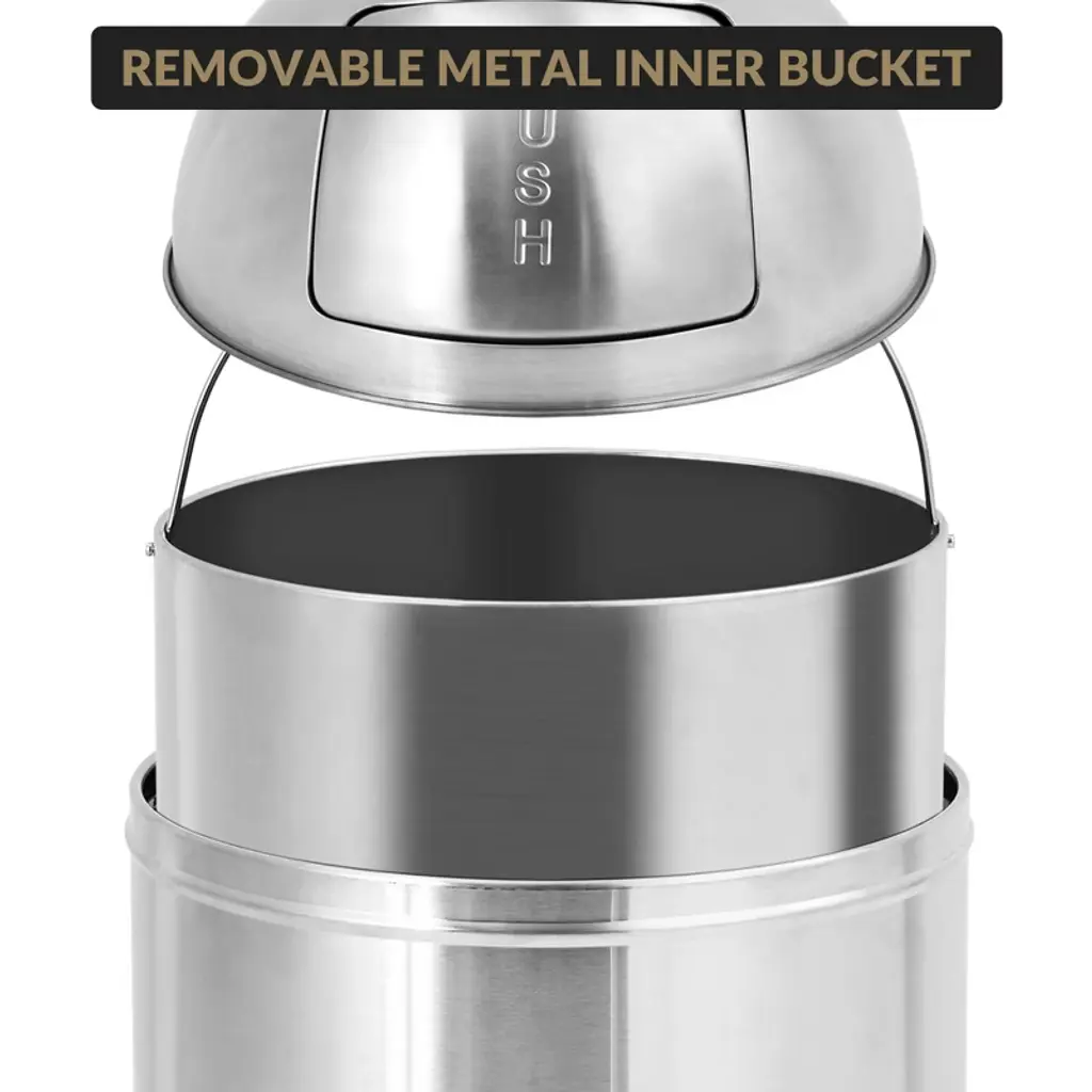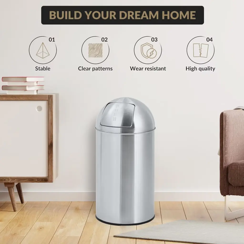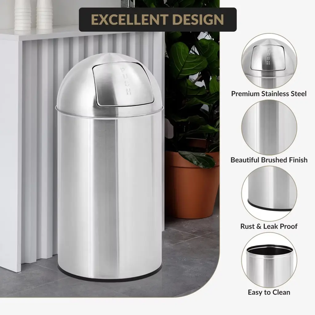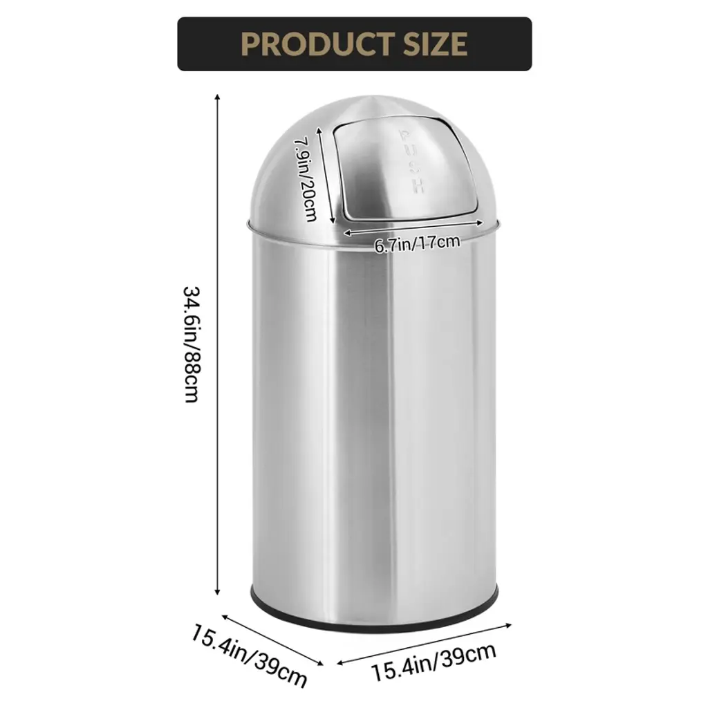 Heavy-Duty 65l Open Top Trash Can, Brushed Stainless Steel Commercial Garbage Bin with Fingerprint-Proof Finish for Kitchen, Restaurant, Office & Bedroom Use