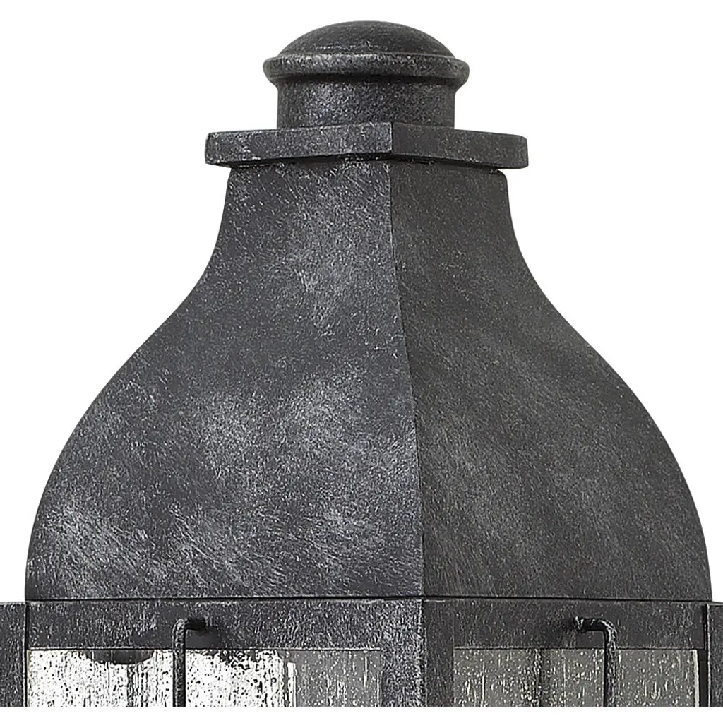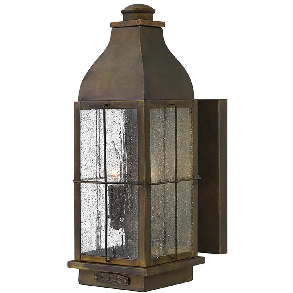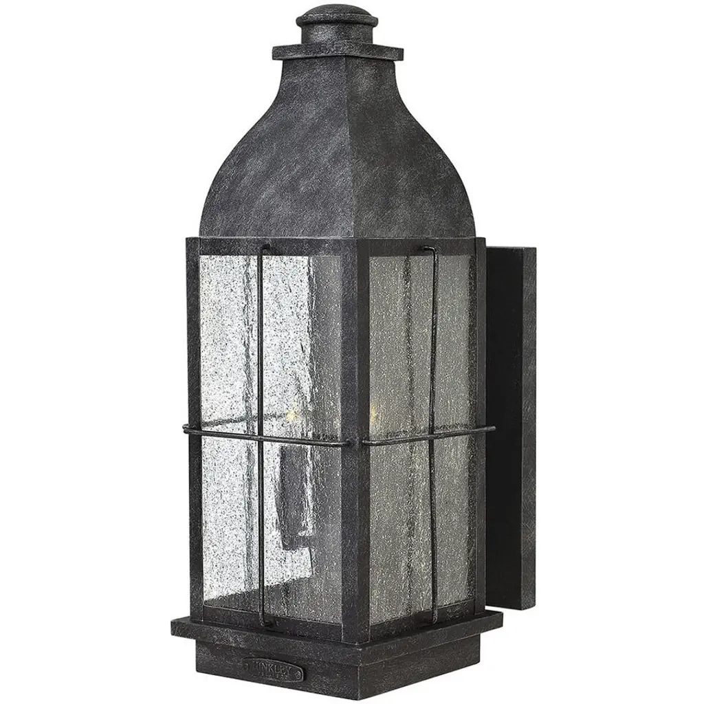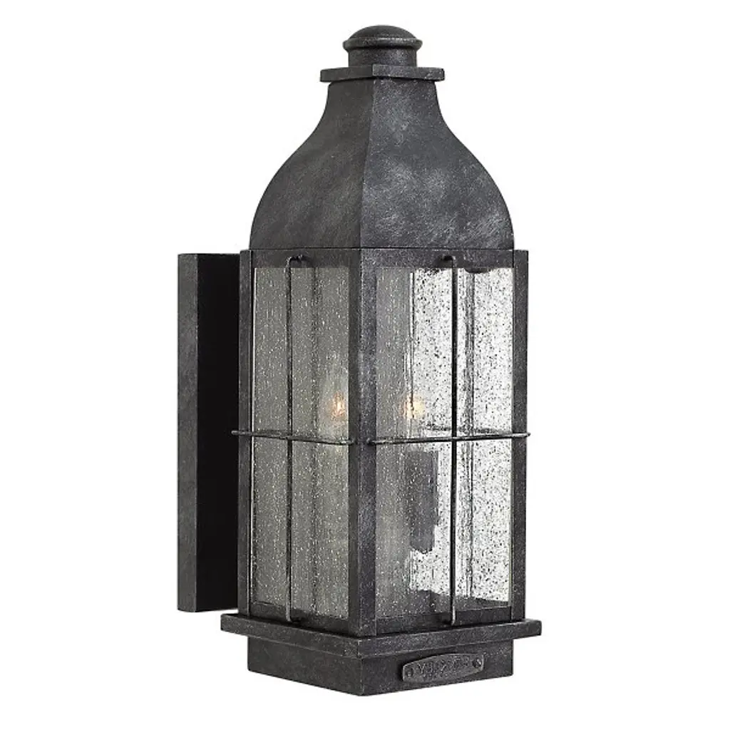 The Heritage Collection encompasses premium outdoor fixtures that pay tribute to the nostalgia of America's past while reinforcing Hinkley's philosophy of timeless, quality design. Bingham's traditional style recalls a turn-of-the-century gas light reproduction. The vintage look is nautical in nature and recognizes Hinkley's origins on the shores of Lake Erie. The aluminum construction features clear seedy glass and a Greystone finish, while candelabra bulbing completes the authentic style.