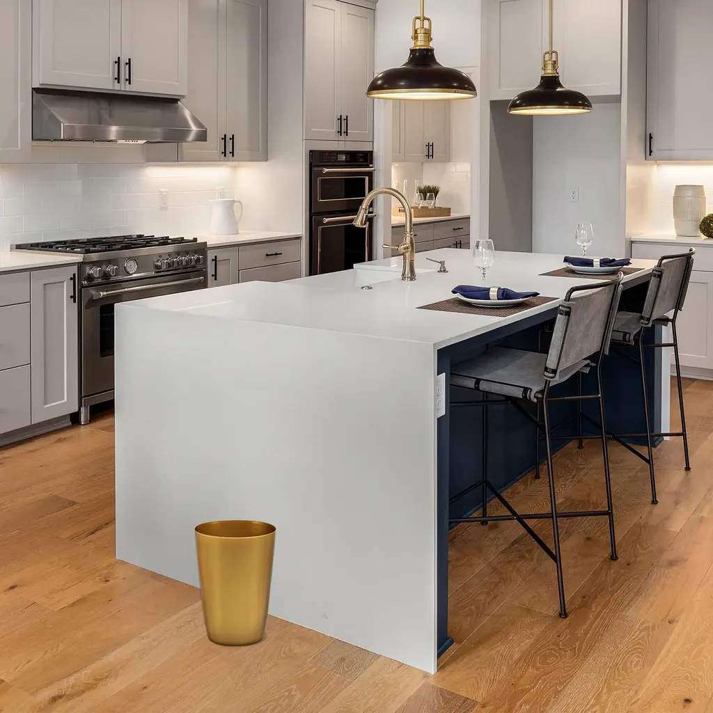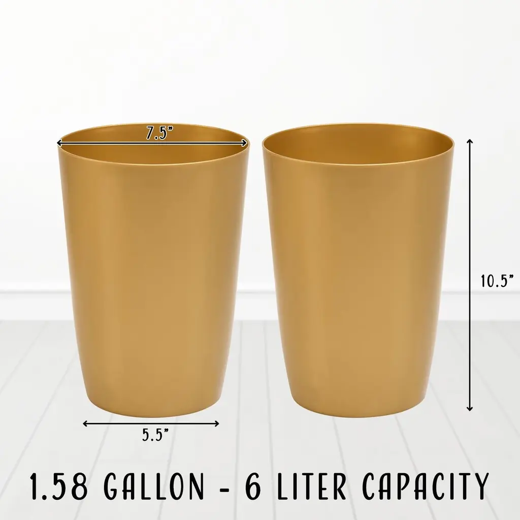Hold N’ Storage - Set Of 2 Small Trash Can With Open Top For Compact And Tight Spaces – 1.58 Gallon Capacity - Soft Brass