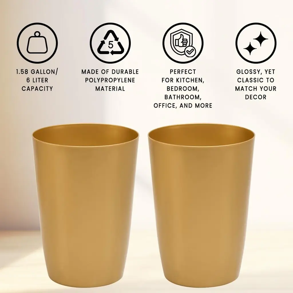Upgrade your small space with this set of 2 Small Trash Cans, perfect for kitchens, bathrooms, offices, and more. Its compact design fits neatly beside toilets, under sinks, and in tight corners, offering a sleek solution for managing waste discreetly. Made from durable polypropylene plastic, it ensures longevity and easy maintenance with a simple wipe-clean surface. With a generous 1.58-gallon capacity, it handles various types of trash and recyclables effortlessly, making it an essential addition to any home or commercial environment. Choose practicality and style with this versatile trash can.