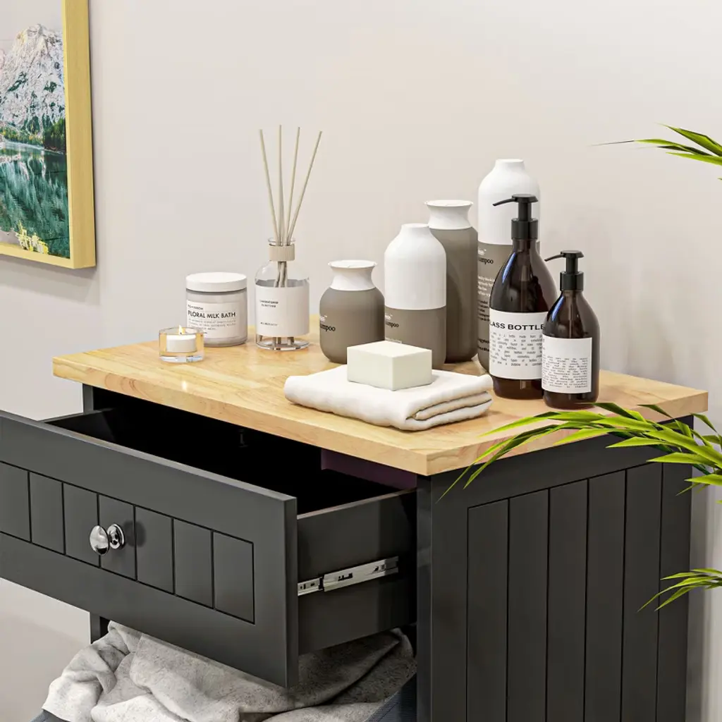 Homcom Kitchen Tilt Out Trash Bin Cabinet Free Standing Recycling Cabinet Trash Can Holder With Drawer, Black