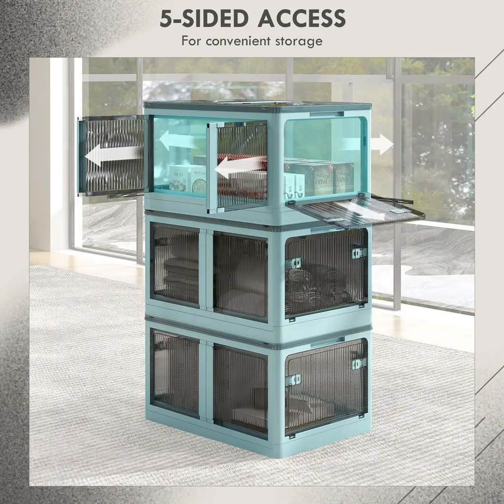 Homcom Stackable Storage Bins With Lids, 3 Packs Collapsible Storage Bins, Plastic Storage Container With Doors - Blue
