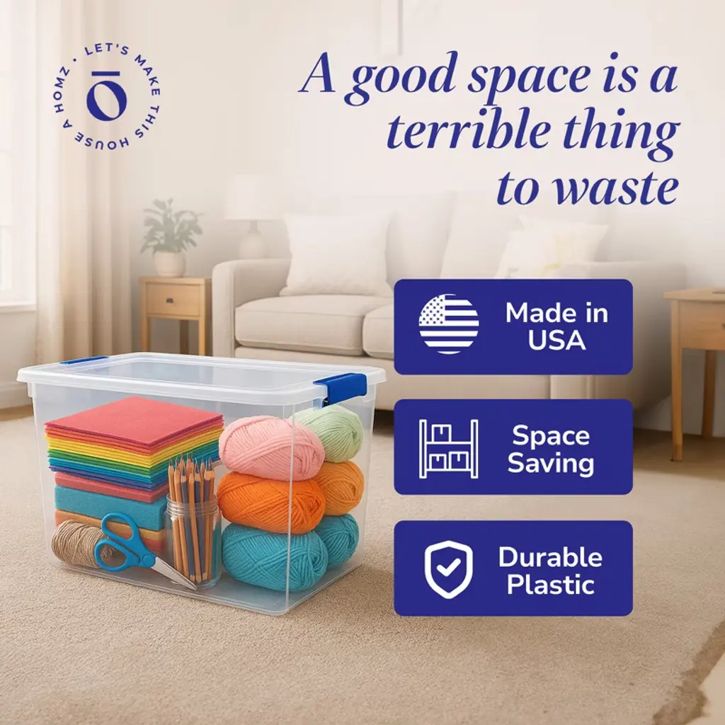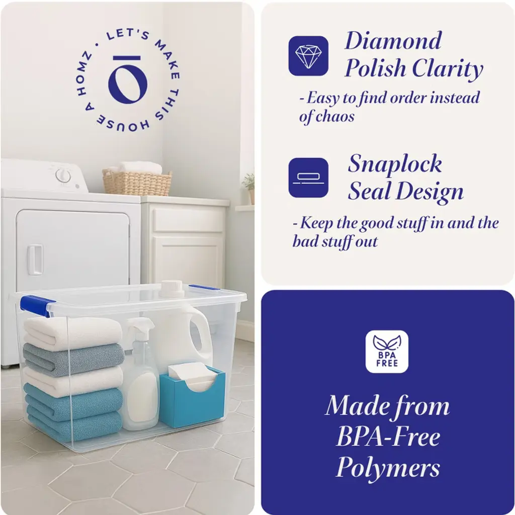Homz 112-quart Clear Plastic Stackable Storage Bin With Lid, Container Box With Latching Handles For Home & Garage Organization, 6 Pack