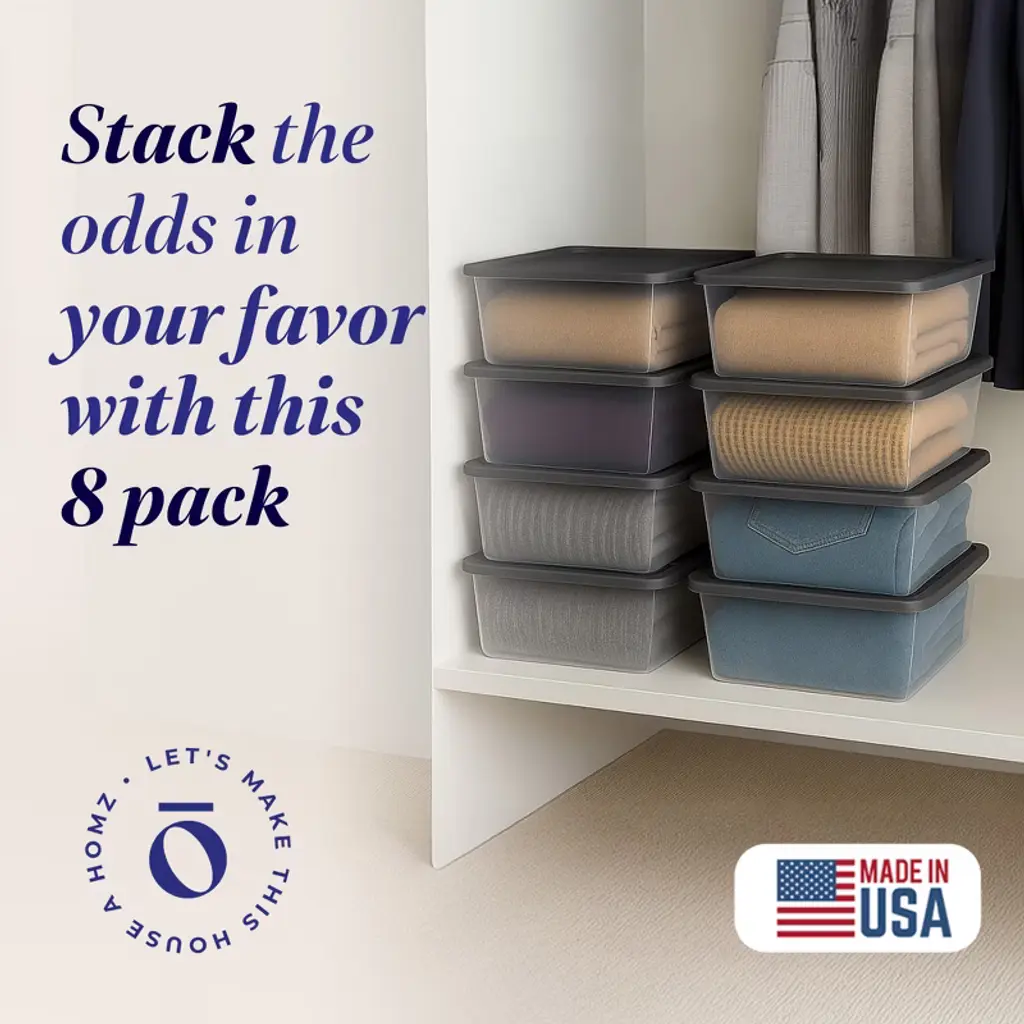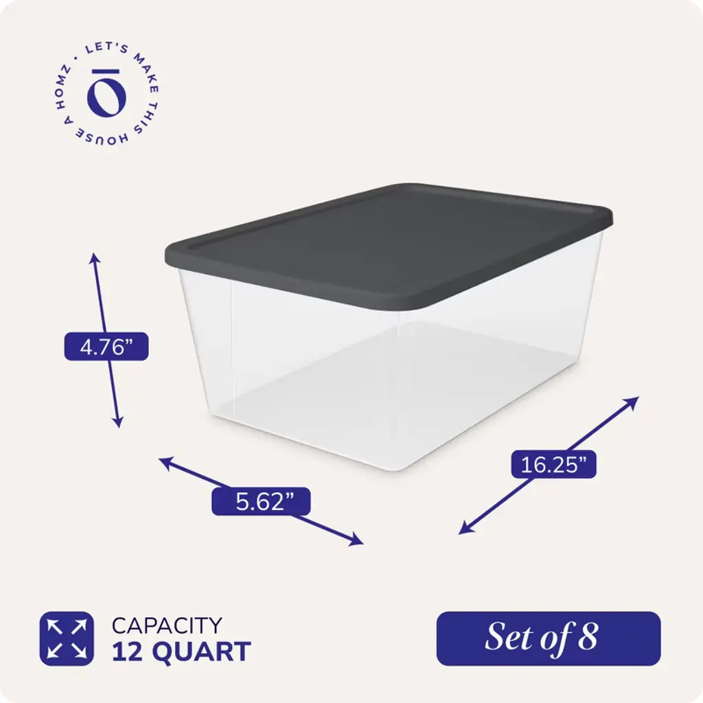 Homz 12 Qt Stackable Plastic Storage Container With Snaplock Lid, Gray (8 Pack)