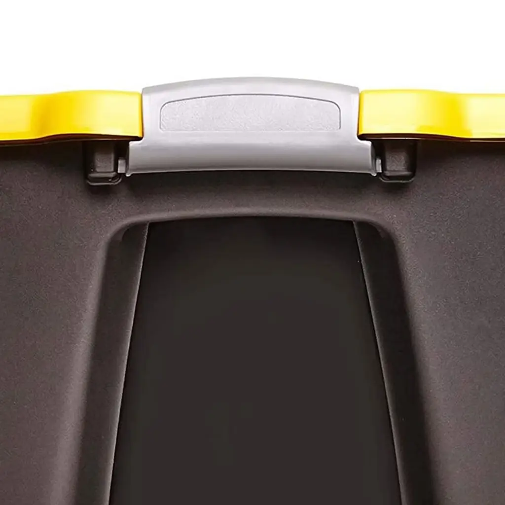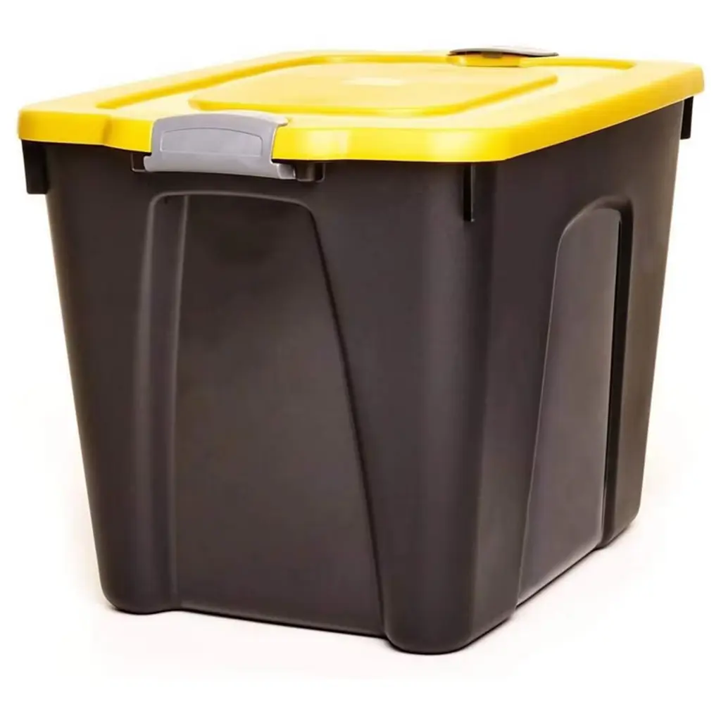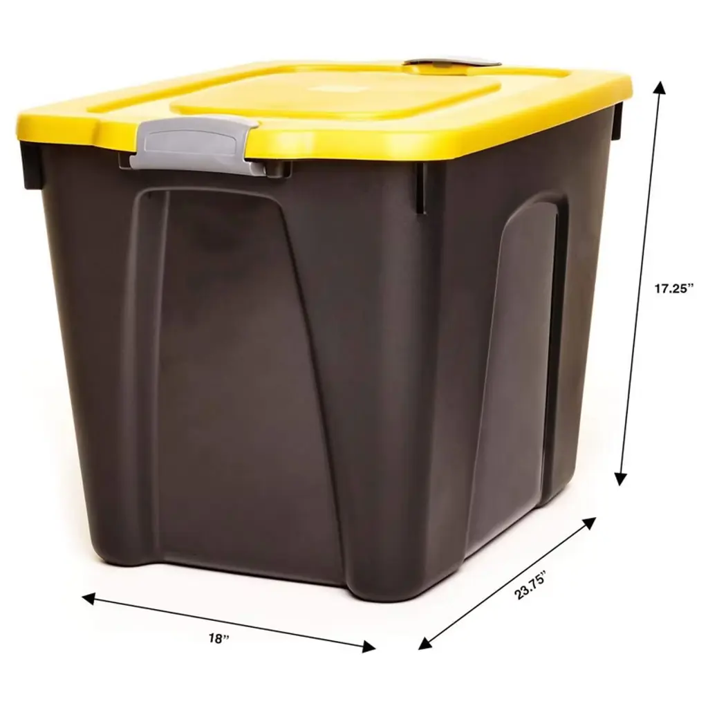 Homz 22-gallon Durabilt Plastic Stackable Home Office Garage Storage Organization Container Bin W/latching Lid And Handles, Black/yellow (4 Pack)