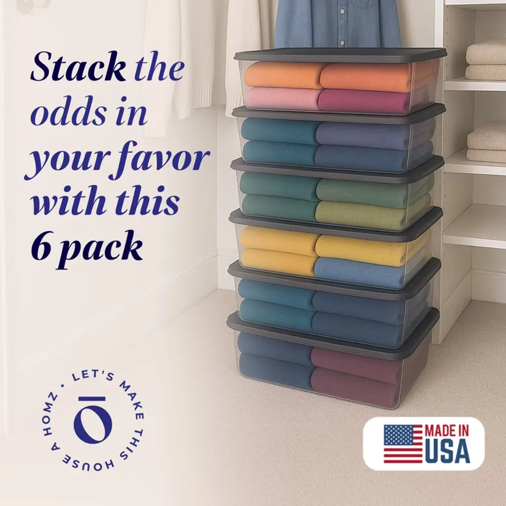 Homz 41 Quart Stackable Plastic Storage Containers With Latching Lid (6 Pack)