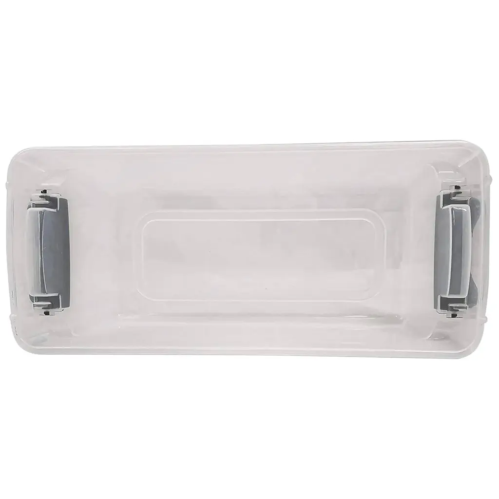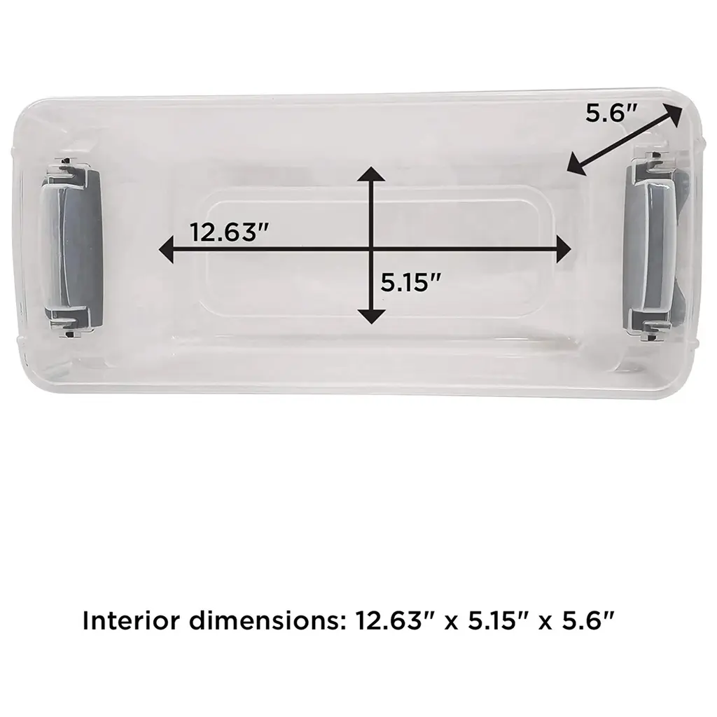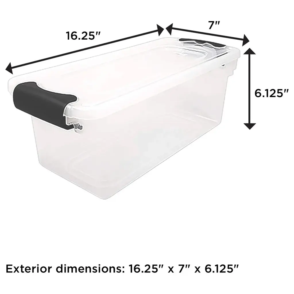 Organize your closet, home office, craft supplies, or kids' playroom by putting everything in its proper place with the 7.5-Quart Latching Storage Containers from Homz. These multipurpose durable totes are ideal for storing clothing accessories, seasonal holiday décor items, and more safely in your home or office spaces. Equipped with secure latching lids, you can be sure that your personal belongings stay safely inside while stored away and will prevent dust, dirt, or debris from ruining your things. The see-through design enables you to identify the contents inside for a quick and efficient find of your things. Built with indexed lids, you're able to stack each bin on top of the other to maximize storage space. With a spacious 7.5-quart capacity, these 5 containers offer endless storage possibilities in many rooms around your home. Tidy up the clutter around your home spaces and enjoy being organized with the 7.5-Quart Storage Containers from Homz. Multipurpose 7.5-quart capacity totes are ideal for storing clothing items, seasonal holiday decorations and other large items around your home Constructed of durable, clear plastic materials to easily identify the items inside Equipped with secure latching lids that snap to the base to form a tight seal and keep dust and dirt out while in storage Bins can be stacked neatly on top of each other when not in use for an efficient storage solution Set includes 5 plastic bins and 5 plastic lids to help organize playrooms, home offices, closets, and bedrooms Material: Plastic Color: Clear Base, Anthracite Gray Latch Dimensions (L x W x H): 16.25 x 7.00 x 6.13 inches Weight: 1.20 pounds