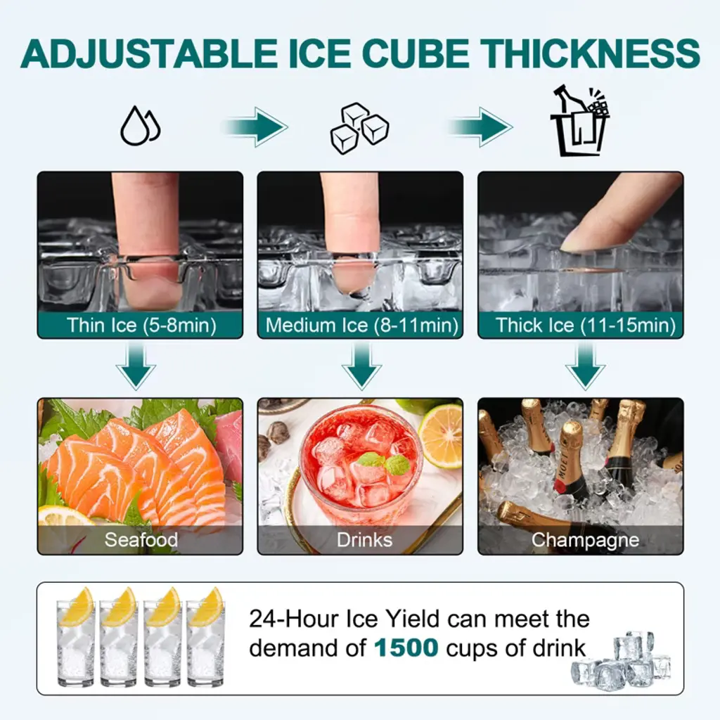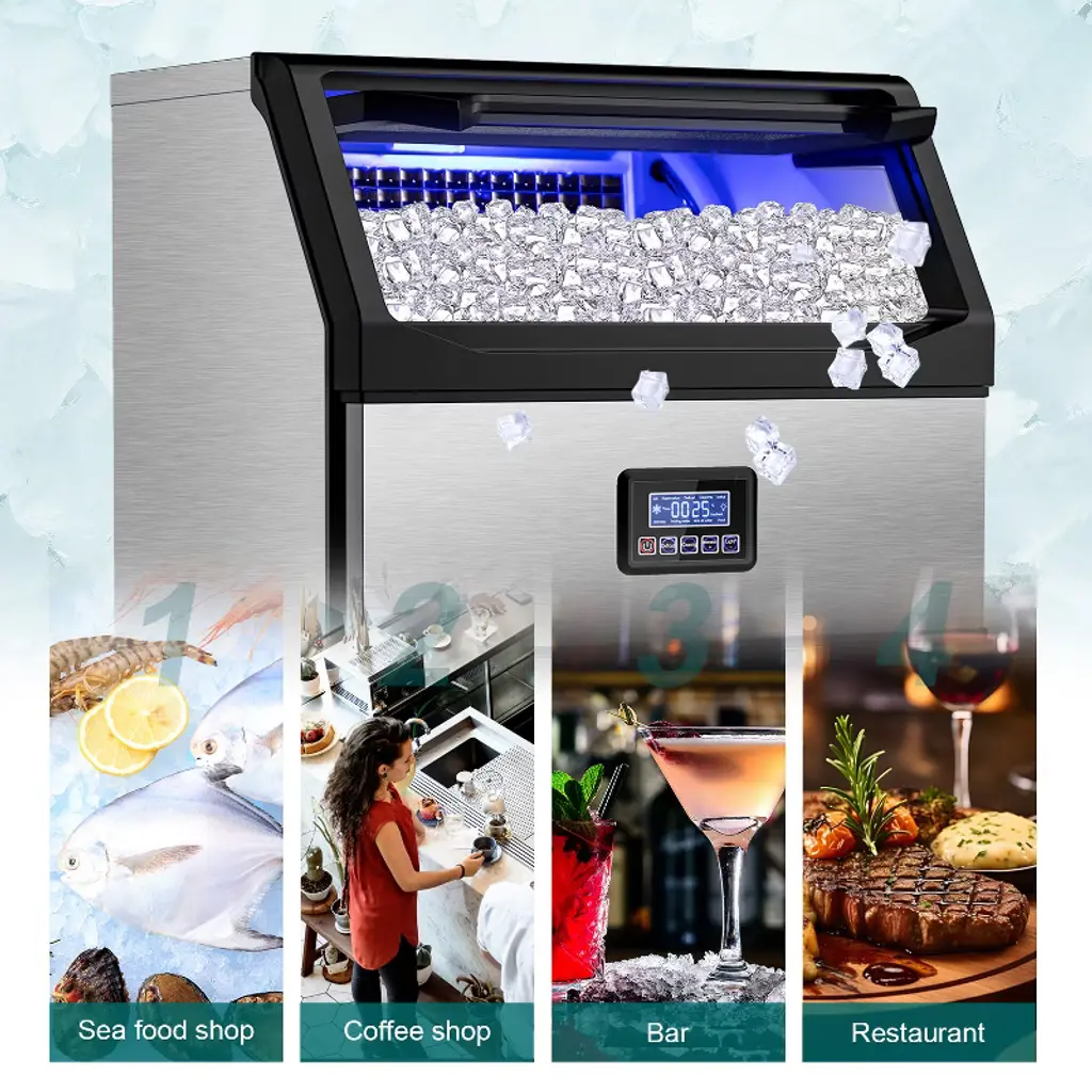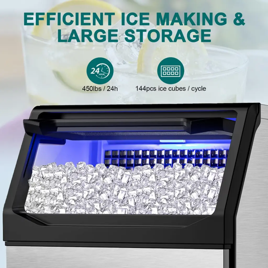 Hooure 25in Commercial Ice Maker Machine 450lbs/24h With 77lbs Large Ice Storage Bin, 144pcs Clear Ice Cubes In 11mins, Stainless Steel